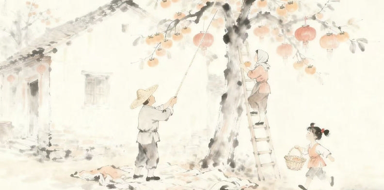 其实想想,那棵树、那些柿子,早就不只是吃的了。它们像是一个个故事,帮我记着小时候的日子。记得每个立冬前后,我跟邻居小孩为了争最后一个软柿子差点打起来,最后是母亲把柿子分成两半,我俩坐在门槛上吃得满脸都是。还有一次我发烧没去上学,母亲就把柿饼泡在温水里,用小勺子一点点喂我。那时觉得,这是世界上最好的药了。