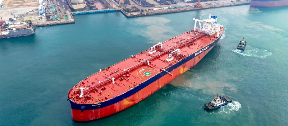 1月14日,31.9万吨氨预留超大型原油船“EBURONES”轮在青岛正式启航(无人机照片)。1月14日,由中国船舶集团青岛北海造船有限公司建造的31.9万吨氨预留超大型原油船“EBURONES”轮从青岛启航。据悉,该船是北海造船为比利时EURON-AV公司建造的第二艘超大型原油船,实现了2026年生产“开门红”。