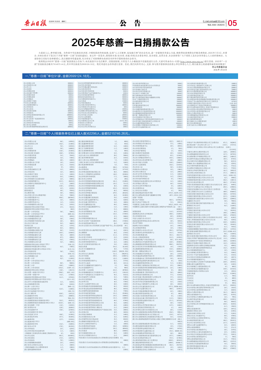 2025年慈善一日捐捐款公告