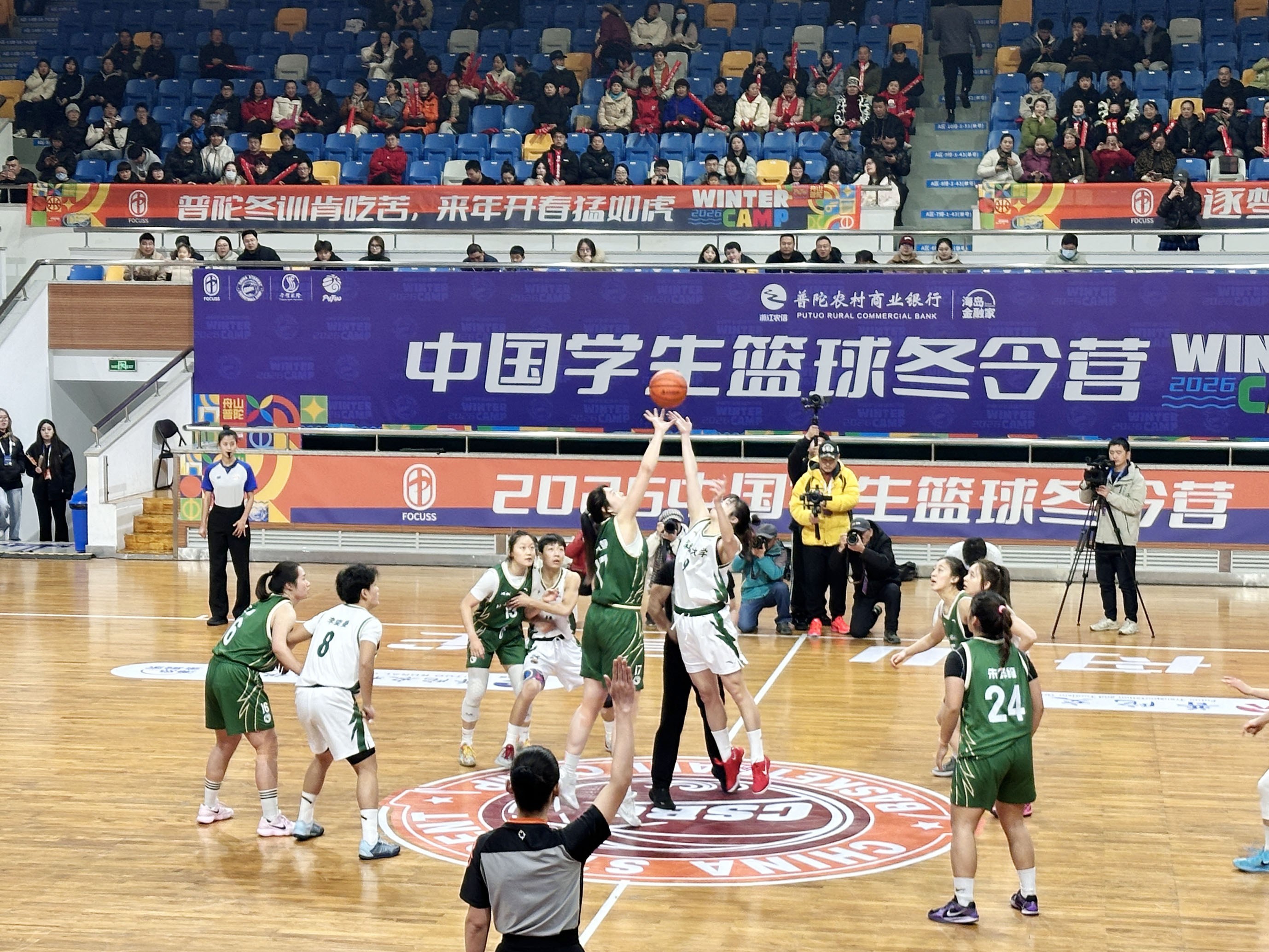 2026中国学生篮球冬令营昨晚在普陀开营。首场比赛深圳大学女篮对阵北京科技大学女篮(见图)。