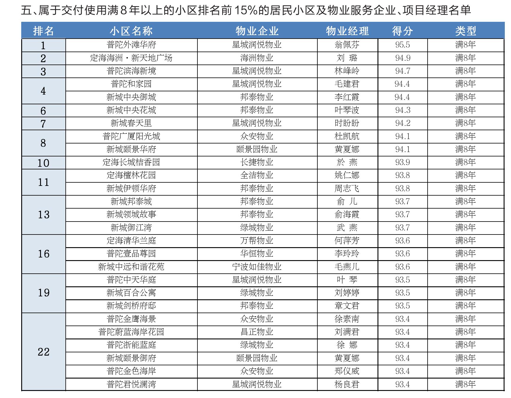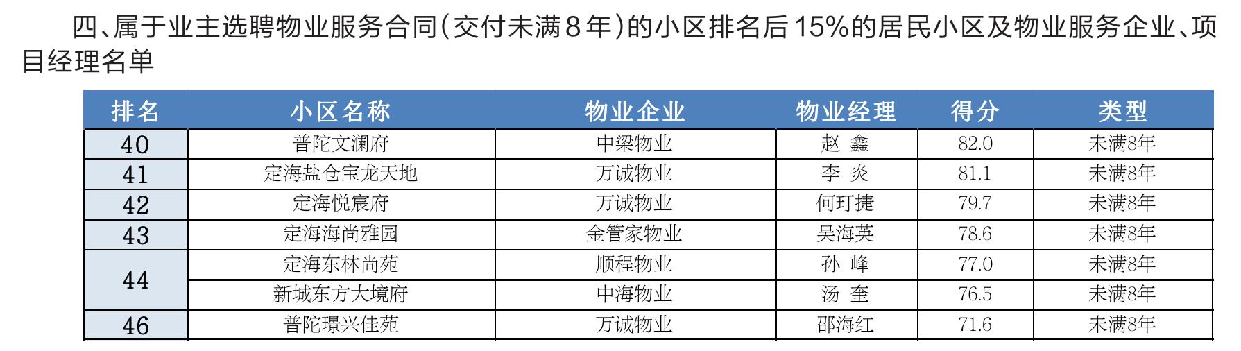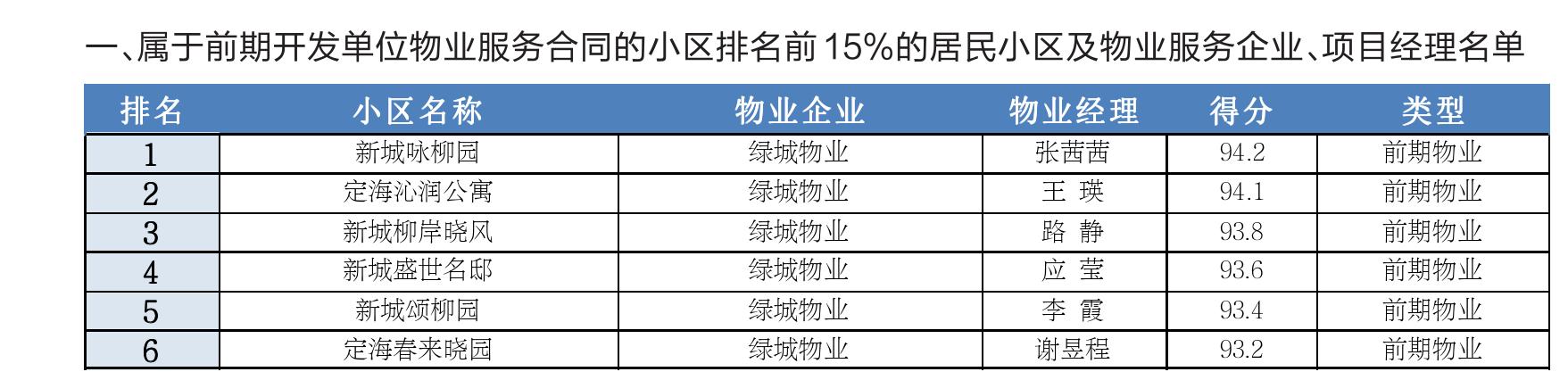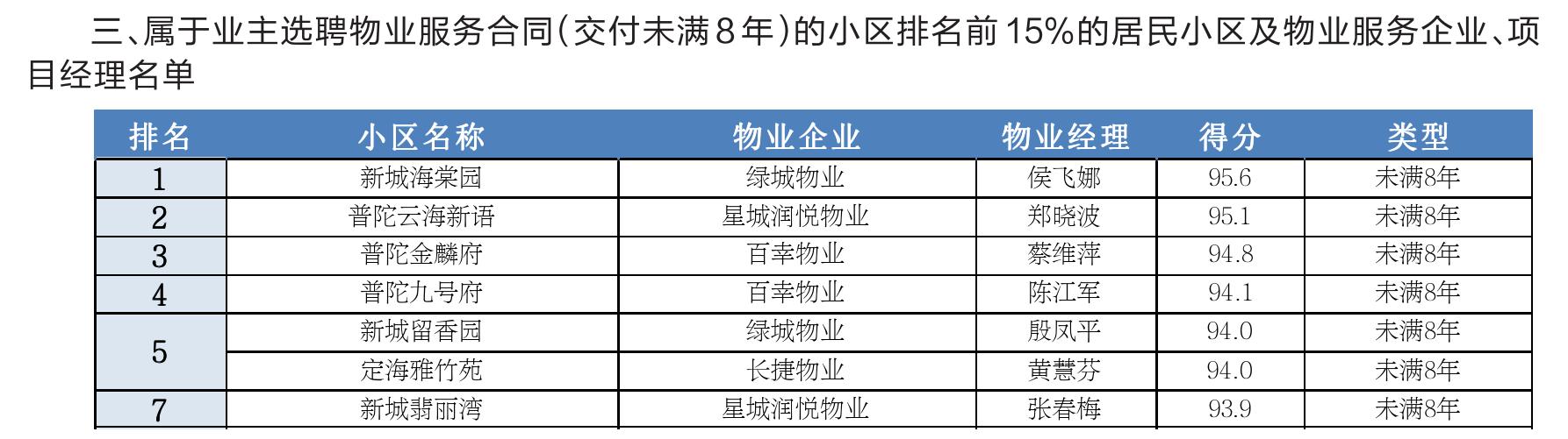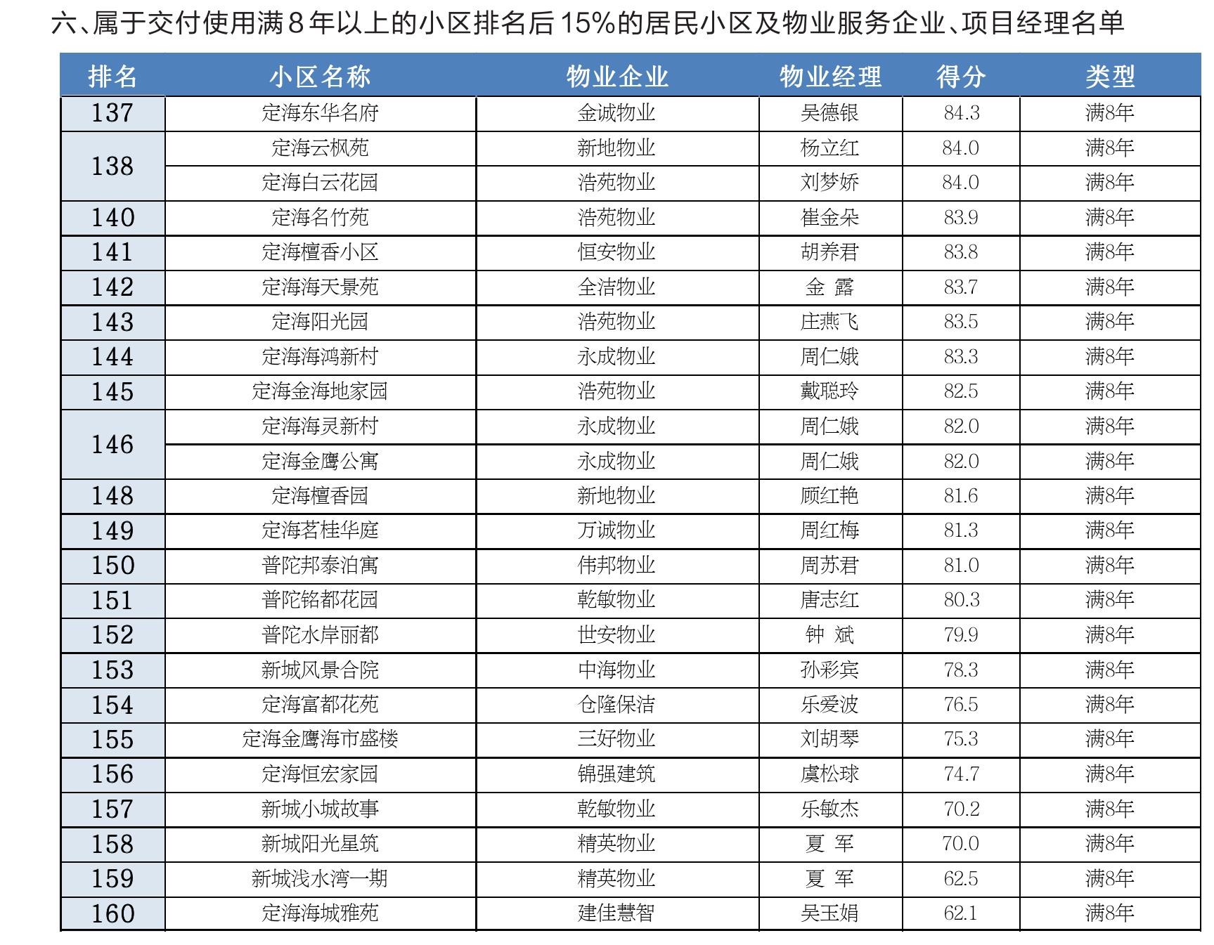 全市中心城区物业服务质量考评结果按三类分类排名,每类排名前15%及后15%的居民小区及物业企业名单公布如下。