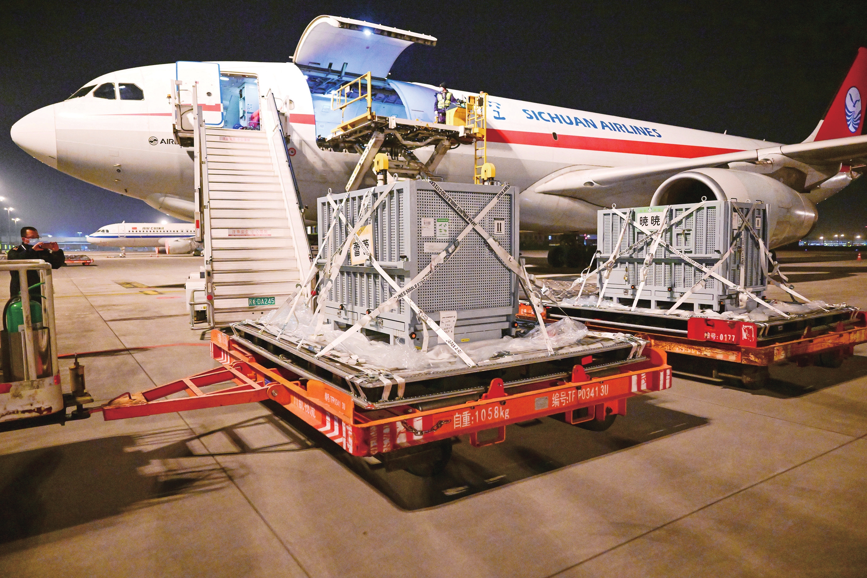1月28日凌晨,大熊猫“晓晓”“蕾蕾”飞抵成都天府国际机场。