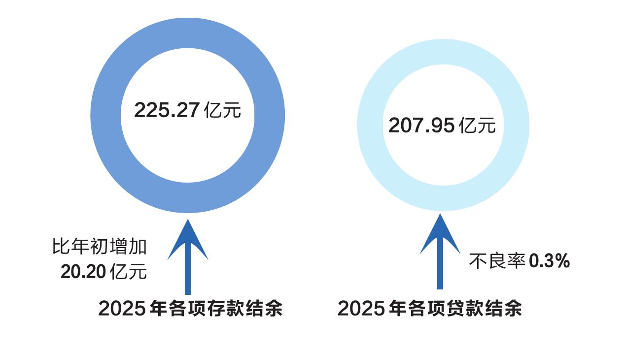 2025年,邮储银行舟山市分行各项存款结余225.27亿元,净增20.20亿元,各项贷款结余207.95亿元,信贷精准滴灌重点领域。资产质量稳健,不良率0.3%,国有大行排名第三。