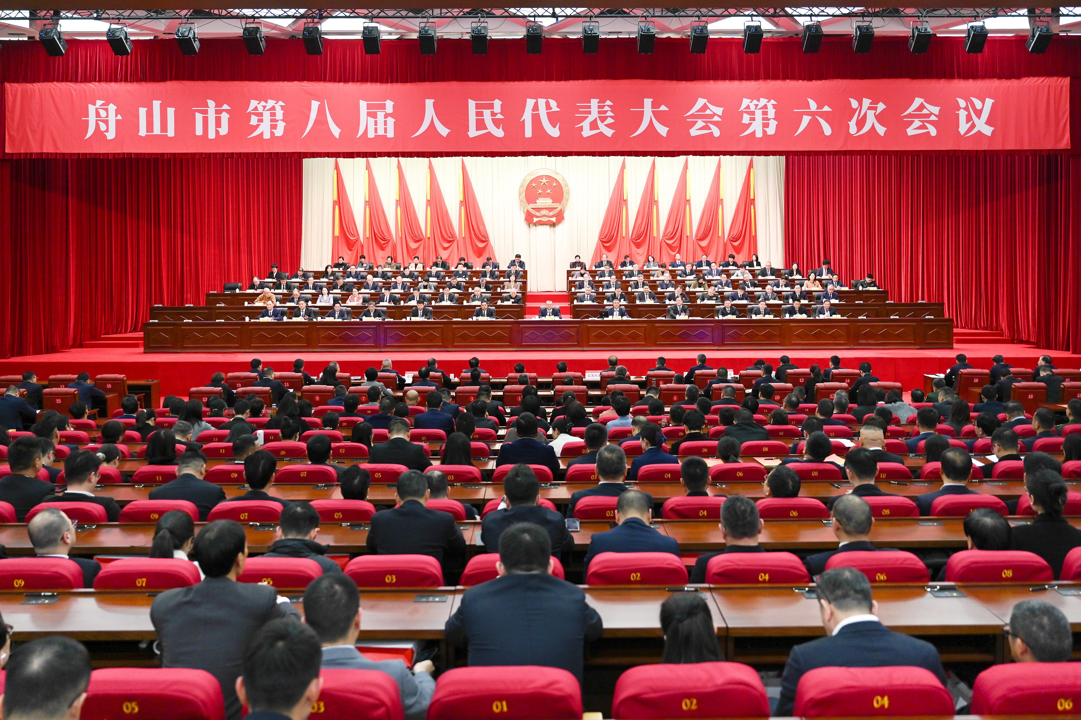 陈重指出,“十四五”以来,全市上下牢记嘱托、感恩奋进,认真贯彻落实习近平总书记“4+1”重要要求和省委“132”总体工作部署,深入实施“985”行动,交出了一份来之不易的高分答卷,GDP年均增速领跑全省、人均GDP走在全国前列,绿色石化、船舶修造等主导产业竞争力持续增强,一批支撑性重大基础设施全面实施,世界一流强港建设扎实推进,海岛共同富裕取得显著成绩,基本公共服务一体化改革持续深化。特别是2025年,全年GDP增长6.6%、居全省首位;大宗商品资源配置枢纽有力开局,跻身全球第三大加油港;甬舟高速复线二期全面开建;城乡居民收入倍差缩小至1.51;成为7个全国文明城市“满堂红”地级市之一;获省平安市“二十连冠”;第9次获得全国“双拥模范城”称号。这些成绩来之不易,是全市广大干部群众团结奋斗、努力拼搏的结果,也凝结着全市各级人大和人大代表的智慧、心血和汗水。
