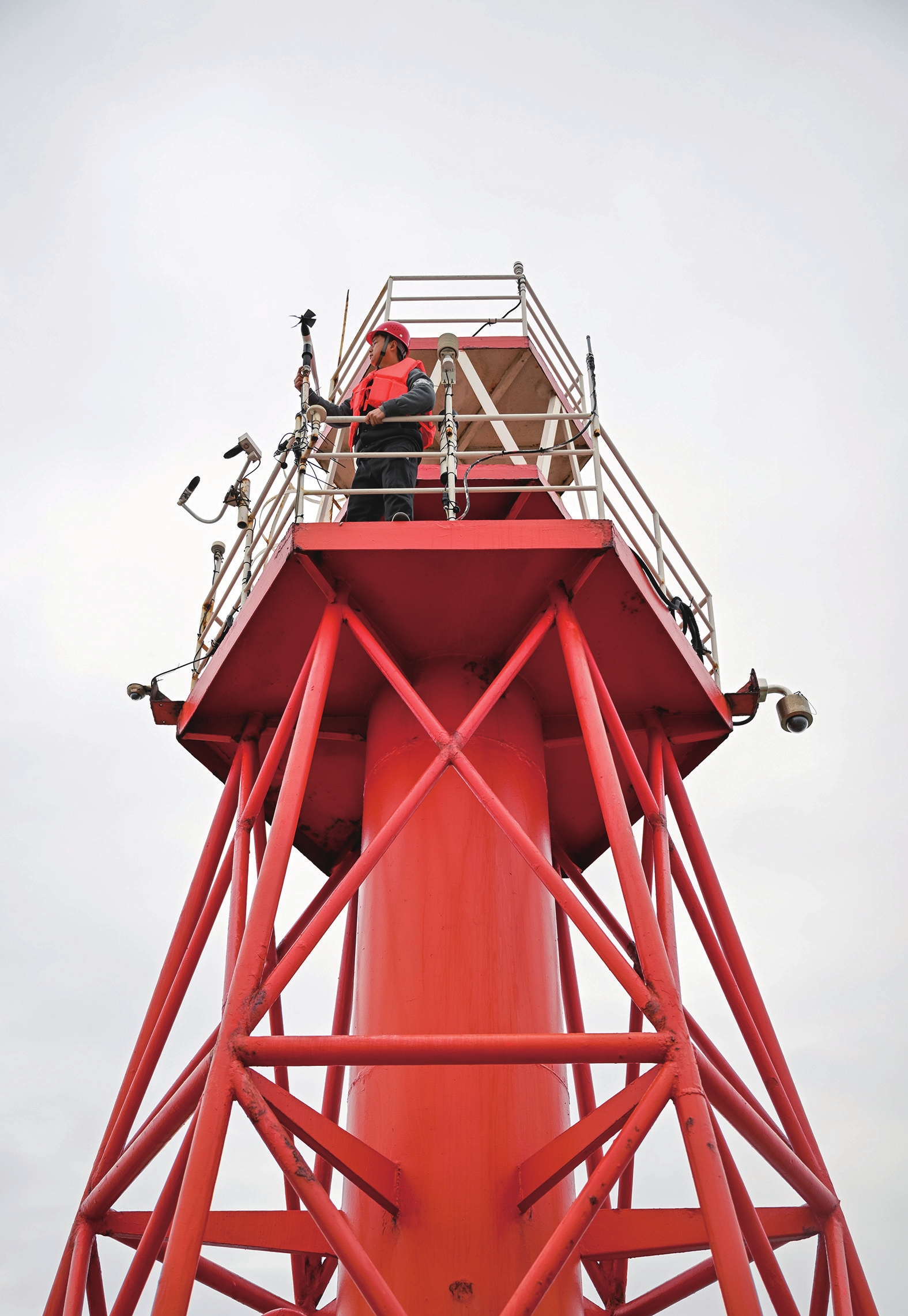 2月10日,王德旺在灯船上检修海洋气象观测设备。春节前夕,上海市气象局上海海洋中心气象台海洋气象探测科的工作人员开展他们的2026年首次出海作业。他们来到一座漂浮在海上、搭载着气象观测设备的灯船,开展设备巡检维护与清洁工作。据海洋气象探测科高级工程师王德旺介绍说,他们的团队主要负责海洋气象探测和相关设备维护工作,年均出海30余次。每一次出海作业都需要耐心、细心和协作。在海洋上,海洋气象探测科的工作人员与风浪为伴,用实际行动诠释着对气象事业的热爱。
