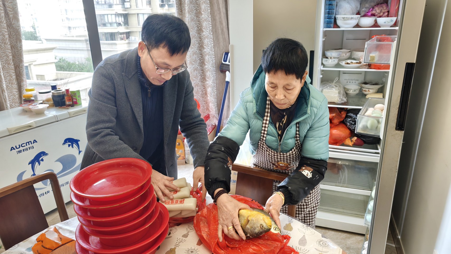 梅田龙帮母亲一起做谢年前的准备