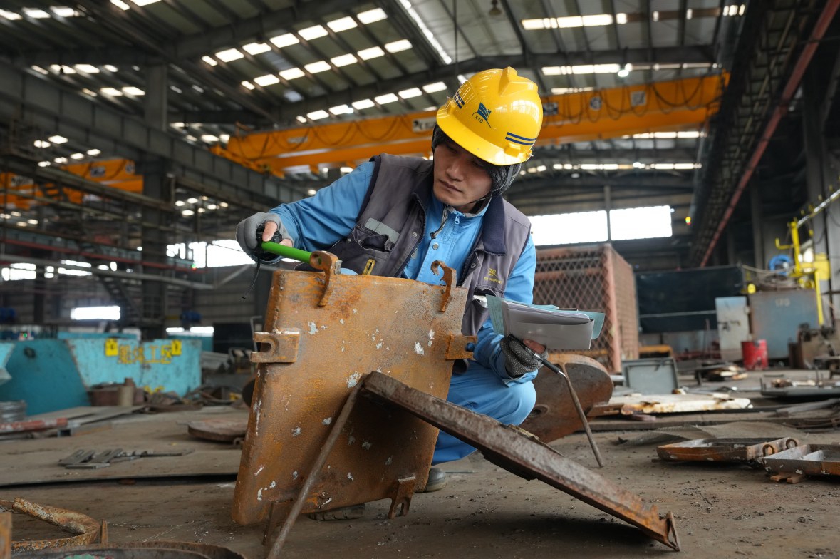 2月17日,舟山市鑫亚船舶修造有限公司,工人坚守岗位 图/王添豪