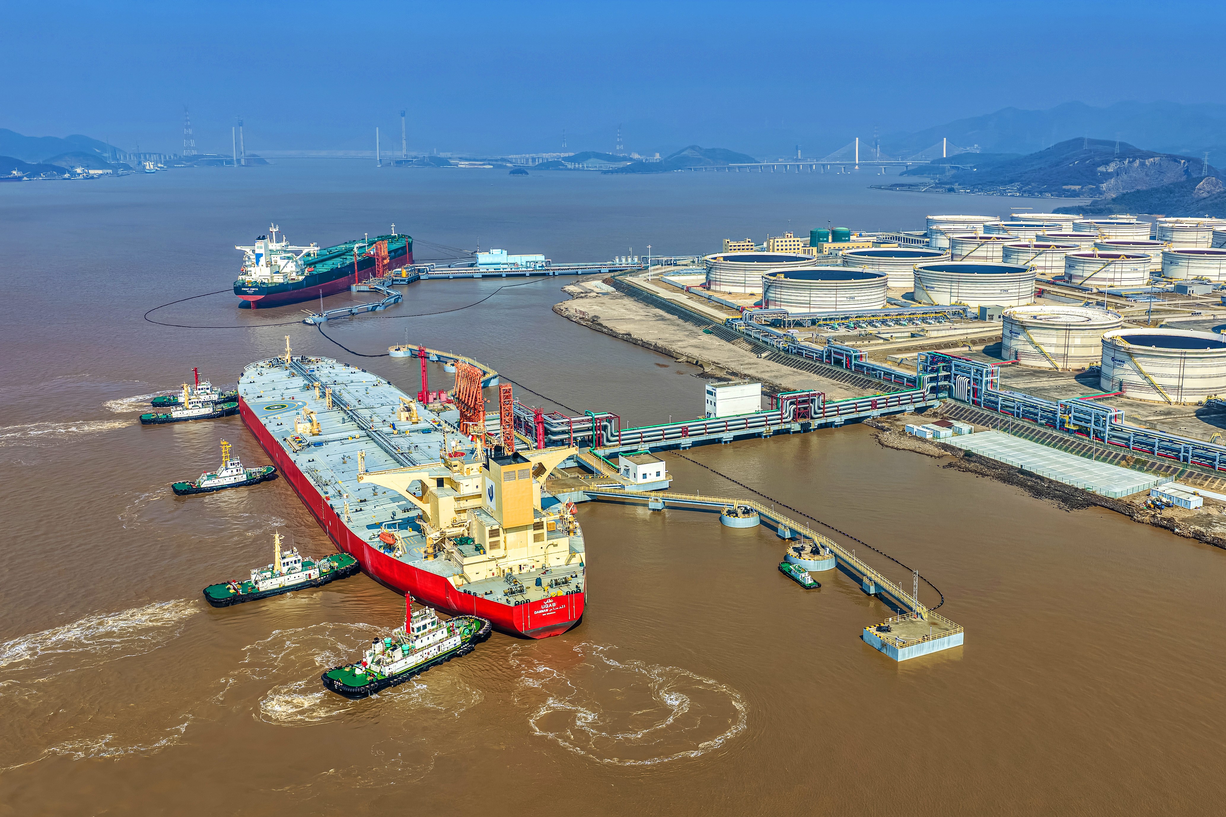 2月18日,定海区岑港街道外钓岛深圳港(舟山)能源基地,”优可贝”大型油轮靠港 图/姚峰 曹殿搏