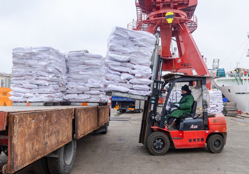 2月25日,舟山国家远洋渔业基地惠群码头,远洋渔获物集中到港卸货 图/周宇超