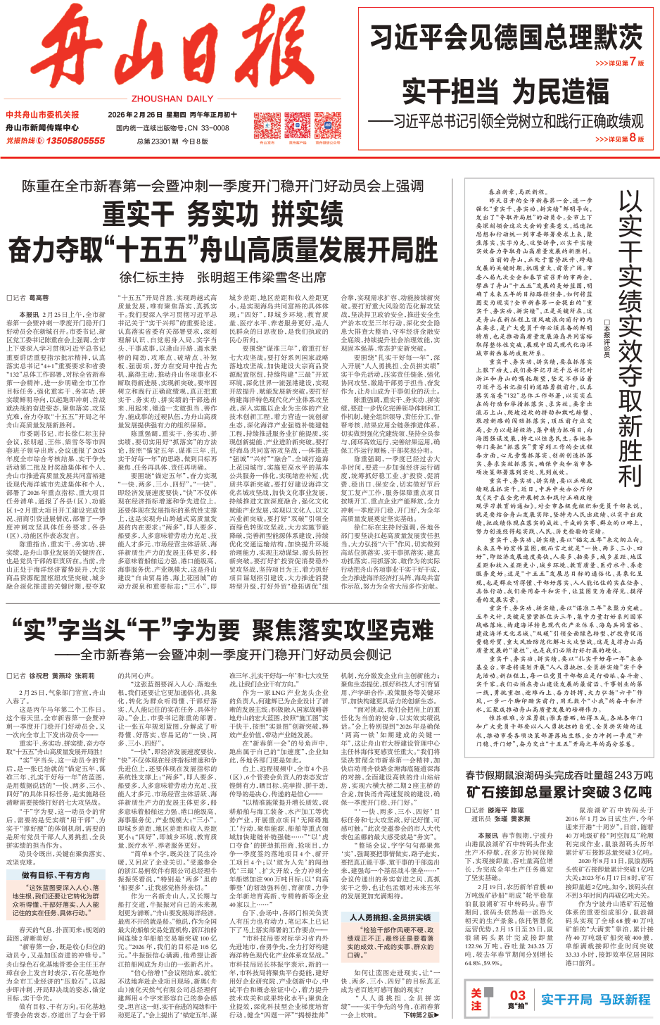奋力夺取“十五五”舟山高质量发展开局胜