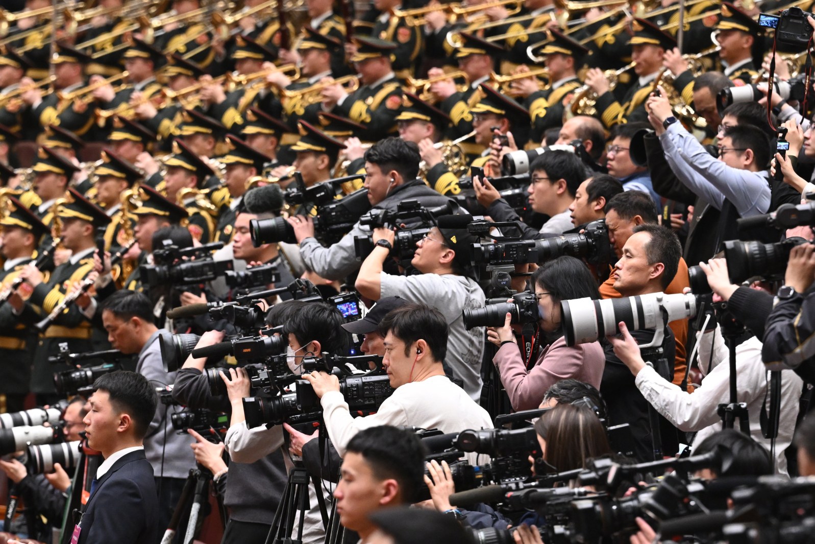 3月4日下午,中国人民政治协商会议第十四届全国委员会第四次会议在北京人民大会堂开幕。这是记者在会场拍摄。