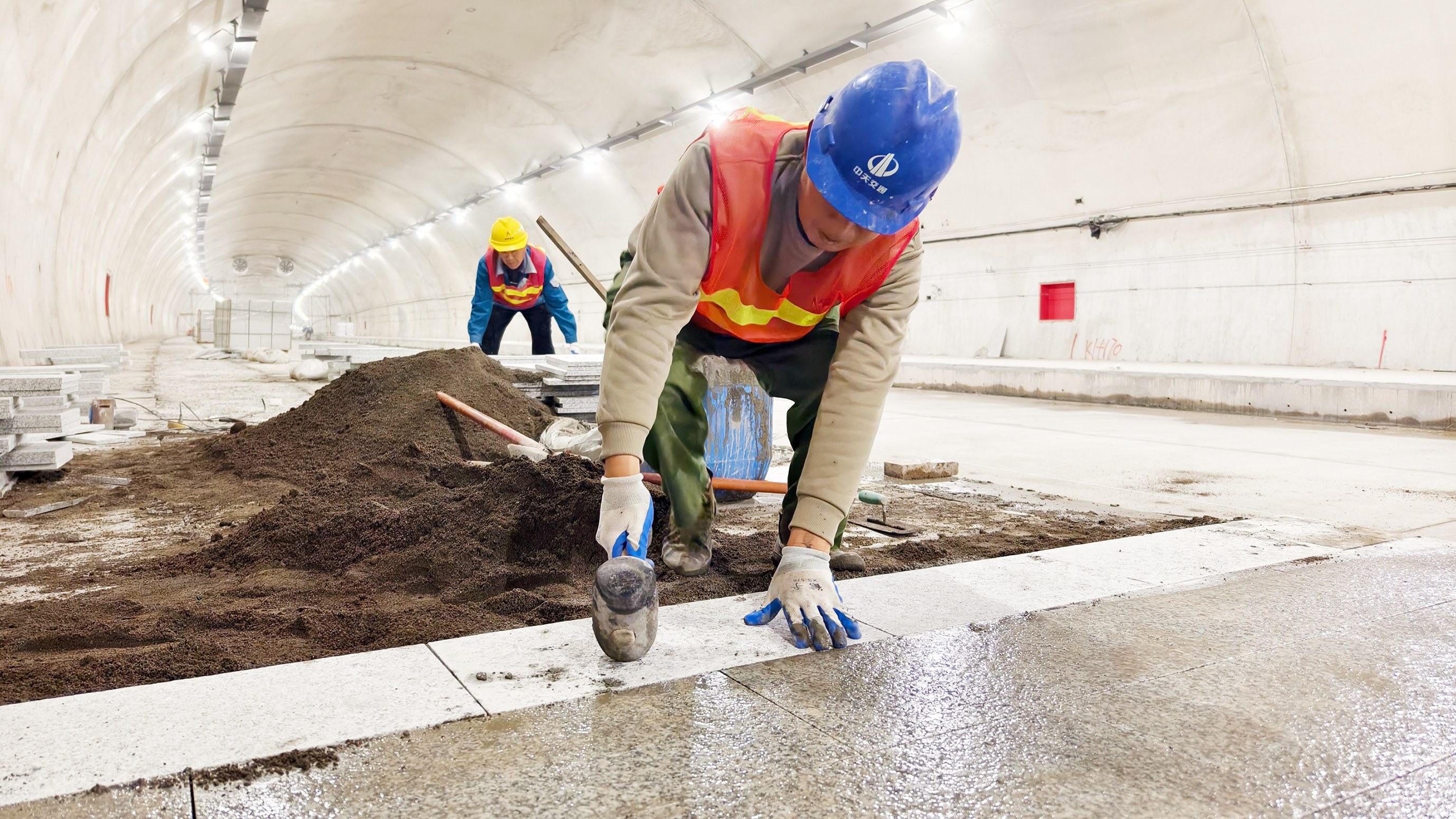 记者近日在古德岭隧道内看到,10余名工人正忙着进行内墙腻子粉刷、非机动车道铺装等收尾工作(见图)。“目前我们以每天80多米的进度推进腻子粉刷施工,后续还要进行两道涂料粉刷,计划再增加一半人手,确保半个月内完成隧道内部装饰工作。”工程项目经理黄洪保说,现场已集结65名施工人员,正全力推进工程建设。