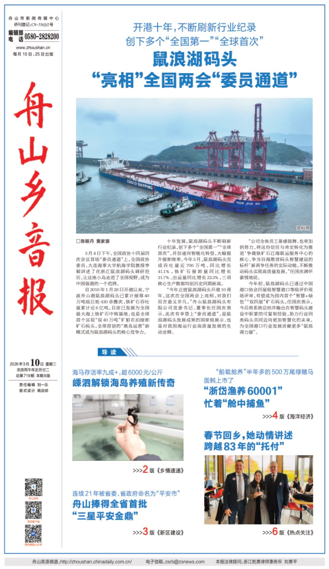 3月10日,新一期《舟山乡音报》和读者见面了,欢迎大家扫码阅读。