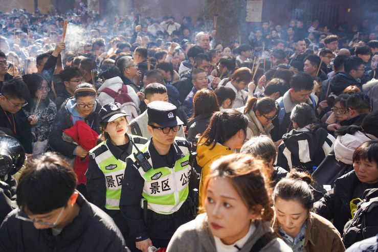 今年春节期间,普陀山景区迎来客流高峰,我市公安会同交通、文旅等部门,科学部署、整体联动,全面投入大客流运输疏导工作。针对核心景区交通压力骤增的情况,公安机关依托数智大脑实时监测重点路段人流密度,完善公交接驳等机制,引导游客有序换乘、快速分流。现场执勤民警在接驳点、码头、主要路口等关键部位驻点值守,协同保安、志愿者等力量共同维持秩序。在抖音警方护航普陀山景区大客流的视频评论区,网友点赞留言:“虽然人很多,但有民警在现场引导、协调,换乘很顺畅,我们心里很踏实。”