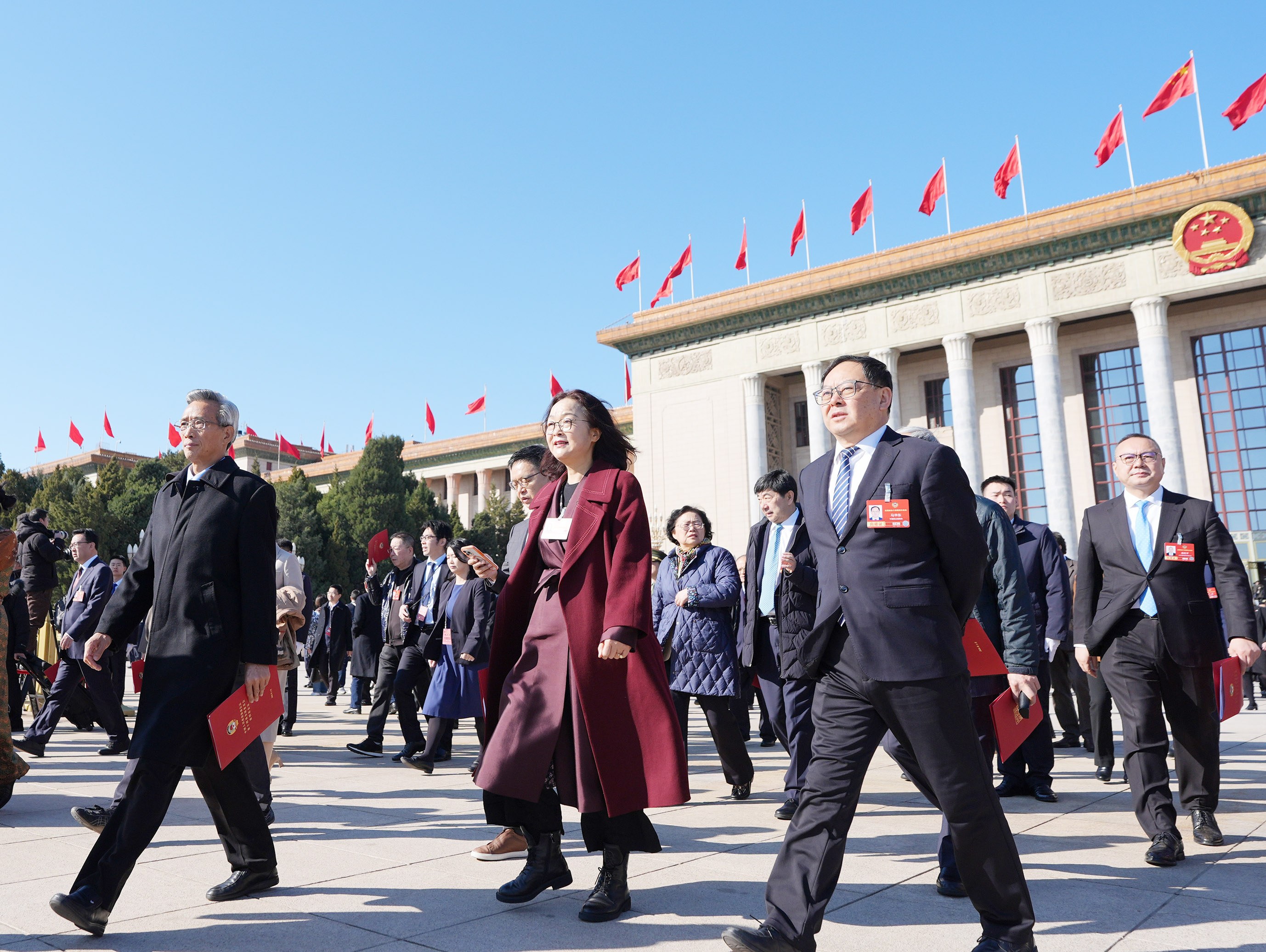3月11日上午,中国人民政治协商会议第十四届全国委员会第四次会议在北京人民大会堂闭幕。这是闭幕会后,委员们走出人民大会堂。