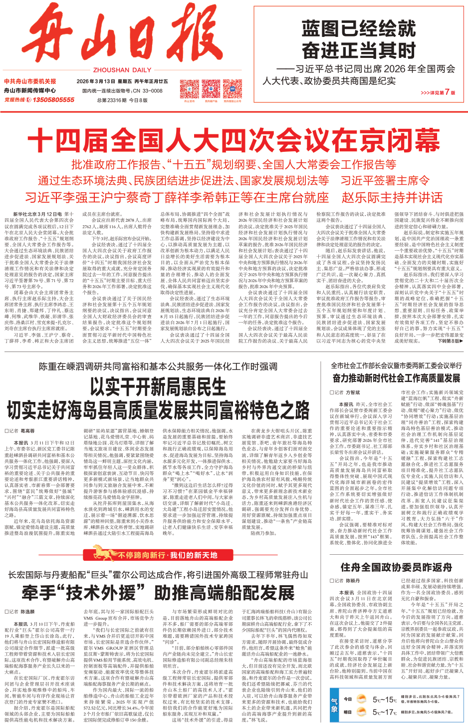 《 舟山日报 》( 2026年03月13日 第 01 版 )