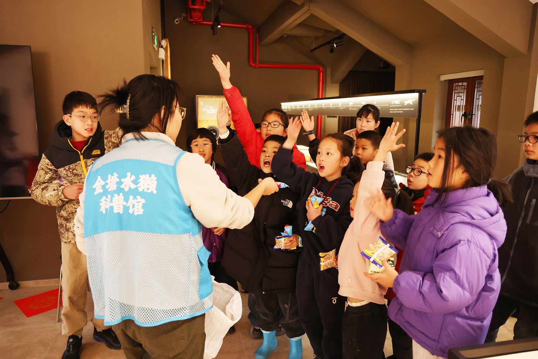 参与者走进水獭科普馆,了解水獭生活习性等科普知识,通过水獭知识趣味问答赢取礼品,参与新春福字拓印,亲手制作年味手作,还体验了新春套圈小游戏获取礼品活动,现场欢声笑语不断。