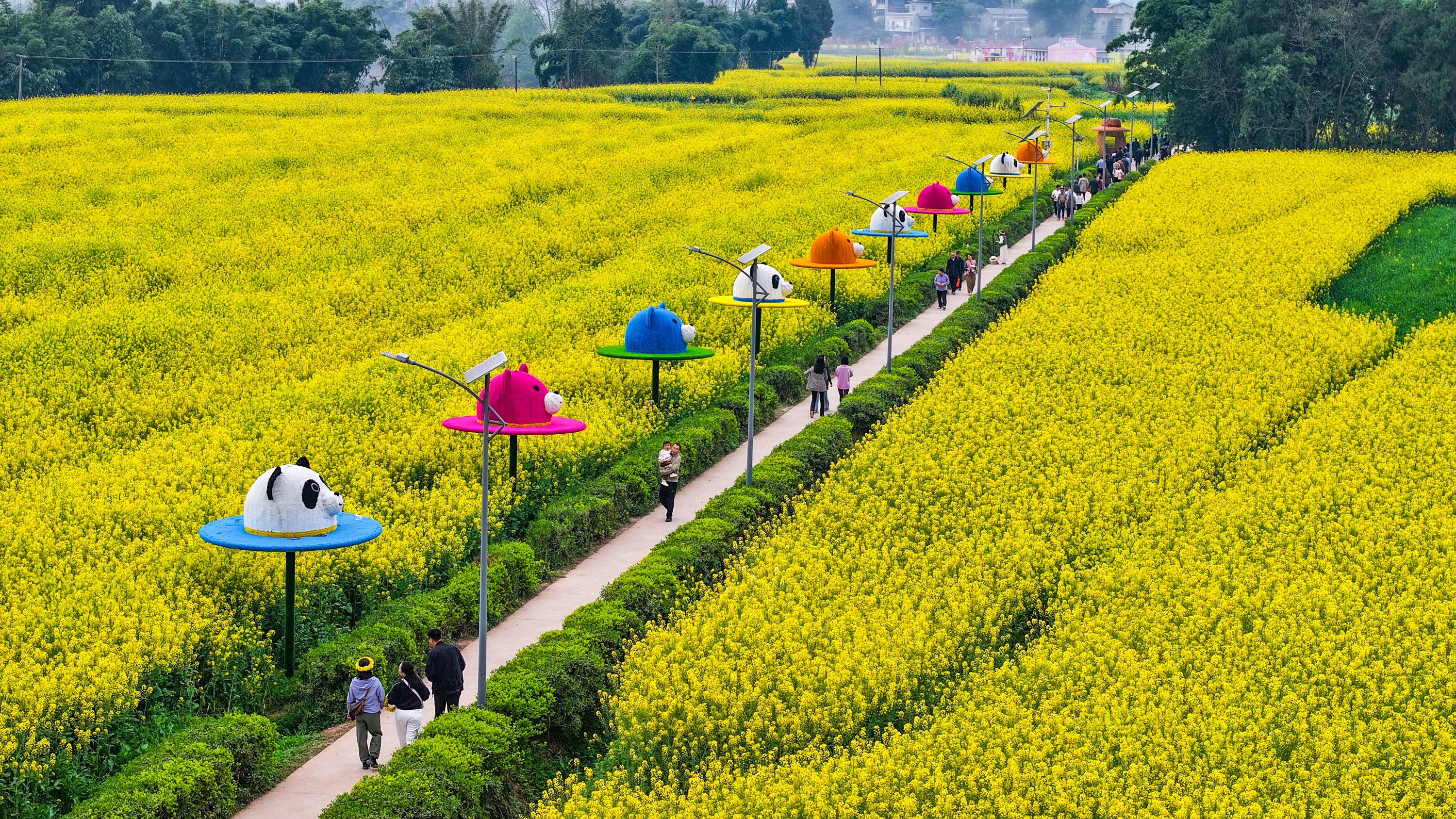 初春时节,重庆市潼南区油菜花竞相绽放,成为春日里一道靓丽的风景线。