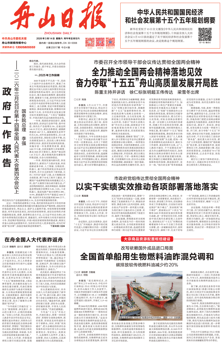 《 舟山日报 》( 2026年03月14日 第 01 版 )