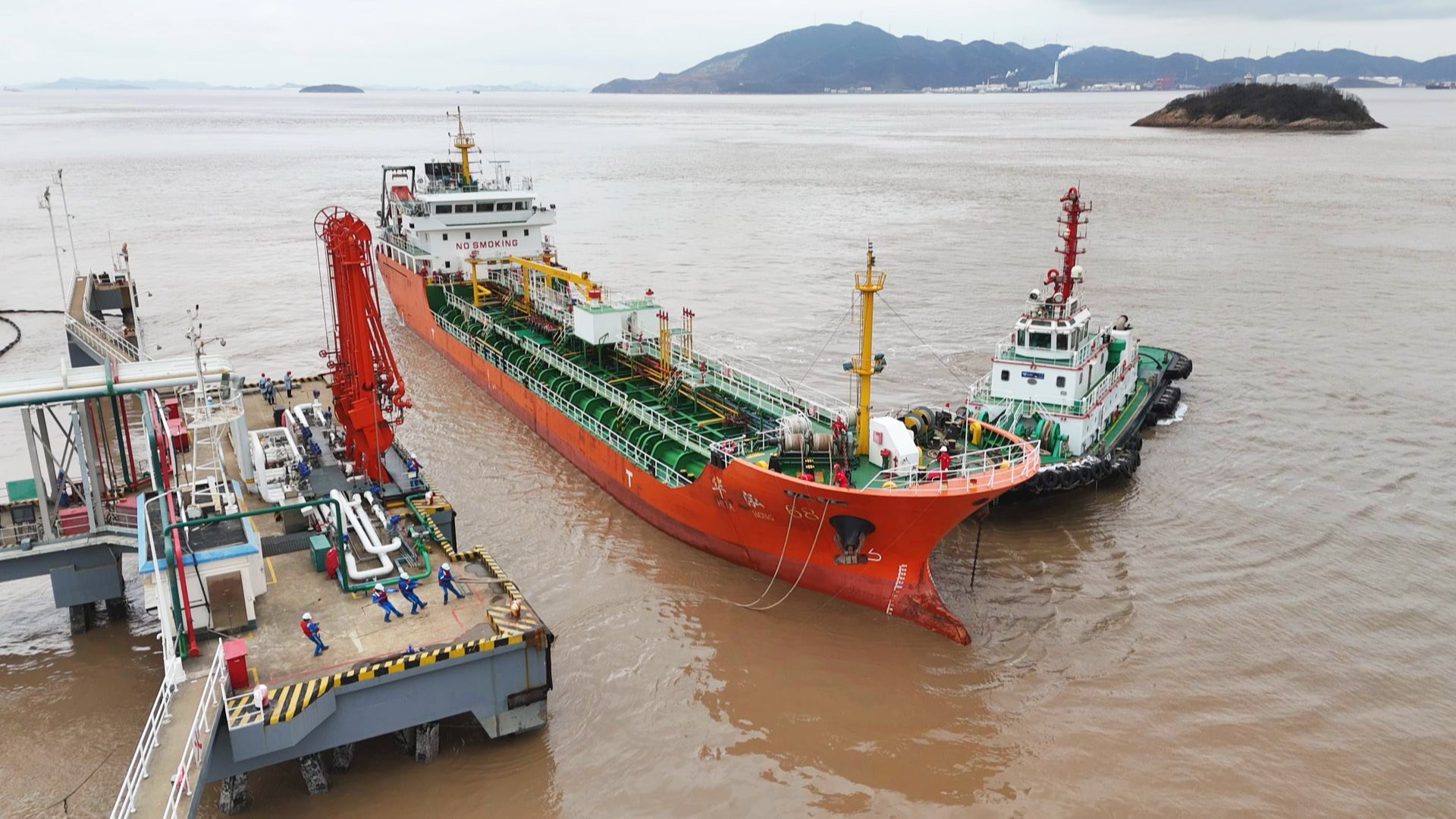 装载生物柴油的“华泓68”轮靠泊中化兴中码头 摄影 记者 王跃蒙