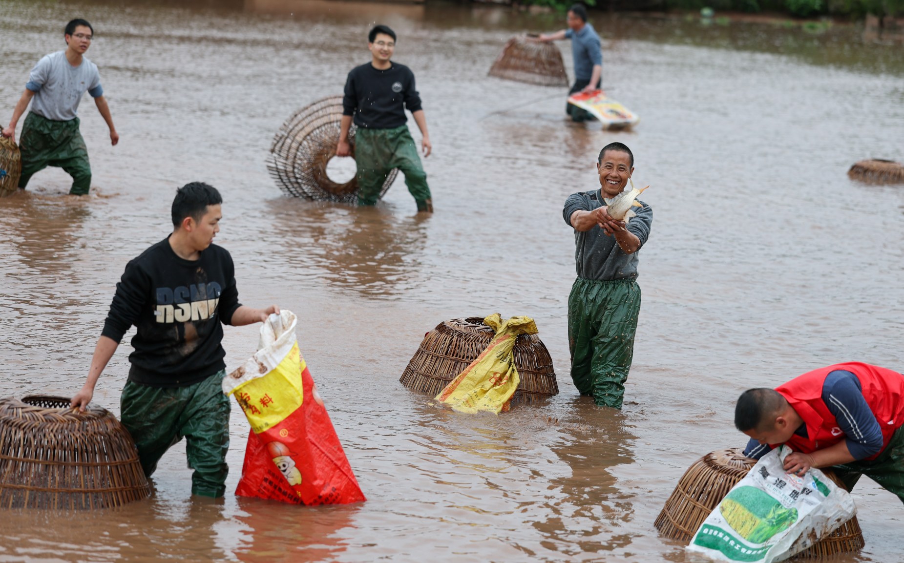 3月14日,当地村民和游客参加摸鱼体验活动。