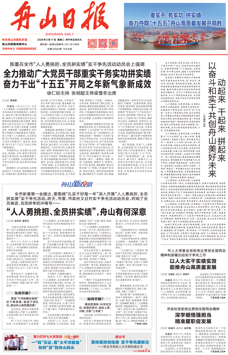 “人人勇挑担、全员拼实绩”,舟山有何深意