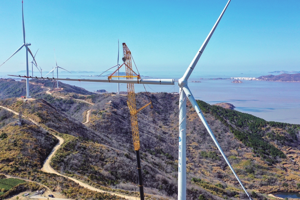 在岱山县衢山岛赛丽风电场,一场以新换旧的绿色能源升级改造正加速推进。山海之间,巨型风机部件与忙碌的建设者们共同勾勒出海岛清洁能源发展新图景。