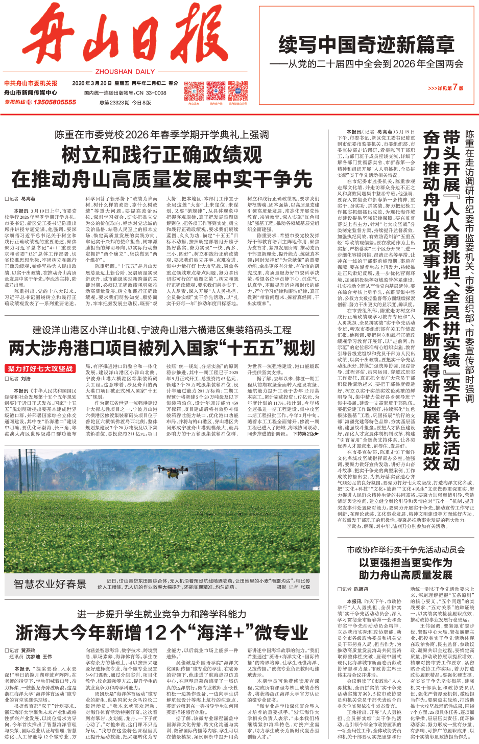带头开展“人人勇挑担、全员拼实绩”实干争先活动 奋力推动舟山各项事业发展不断取得新进展新成效