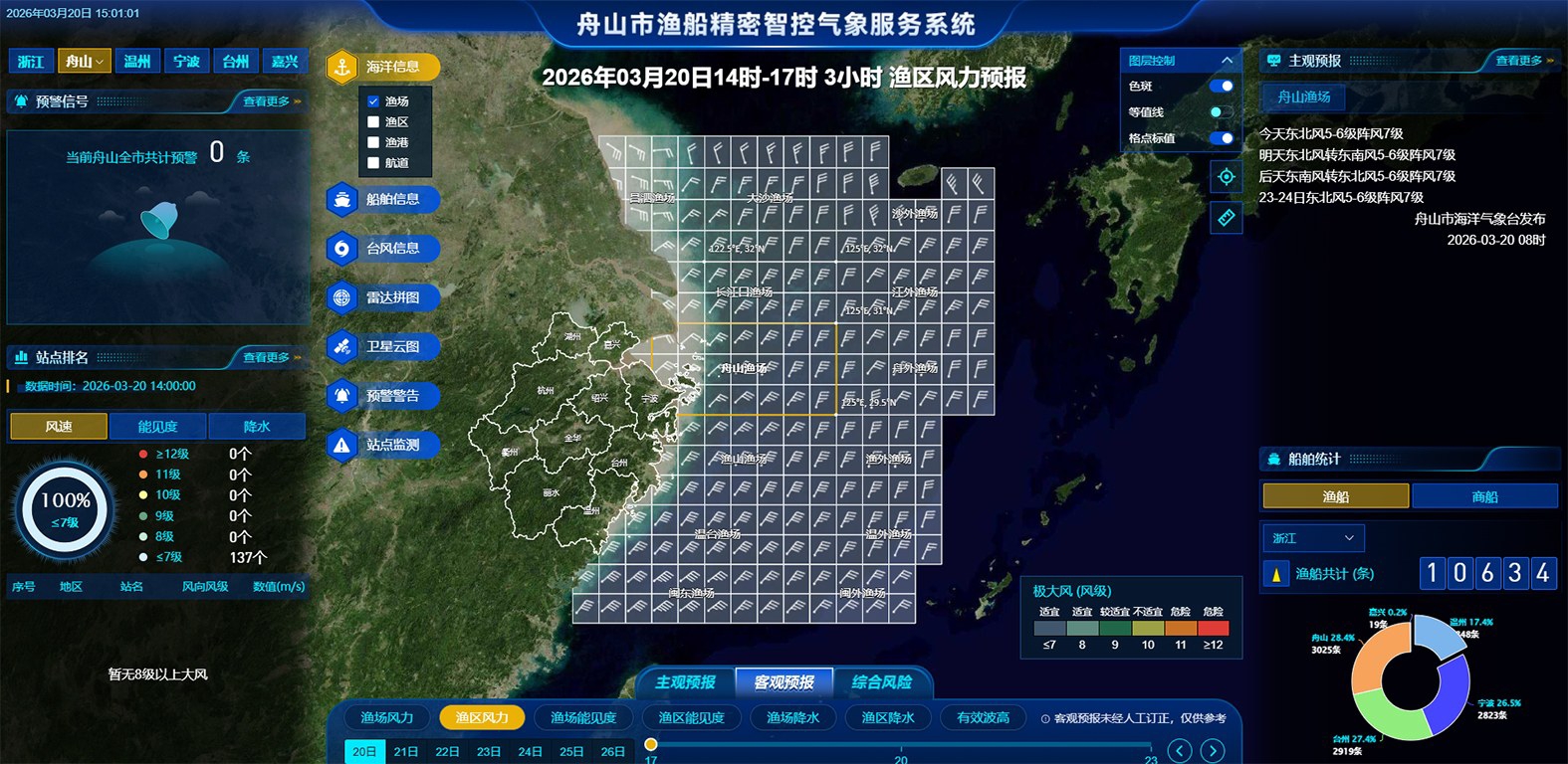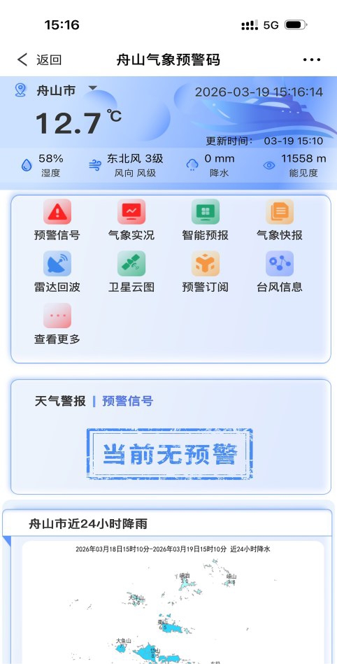 数智气象可感可及。建成气象防灾减灾决策、港航气象、交通气象等气象应用场景,渔船精密智控在市县乡镇三级渔船安全管理机构广泛应用,锚地供油气象服务平台深度融入舟山综保区燃油调度和综合保障,助力舟山港跃居全球船用燃料加注第三大港,舟山气象预警码在浙政钉舟山智慧政务部署应用,成为各级防灾责任人手中的“掌上哨兵”,切实转化为守护群众安全、赋能海洋经济的实战能力。