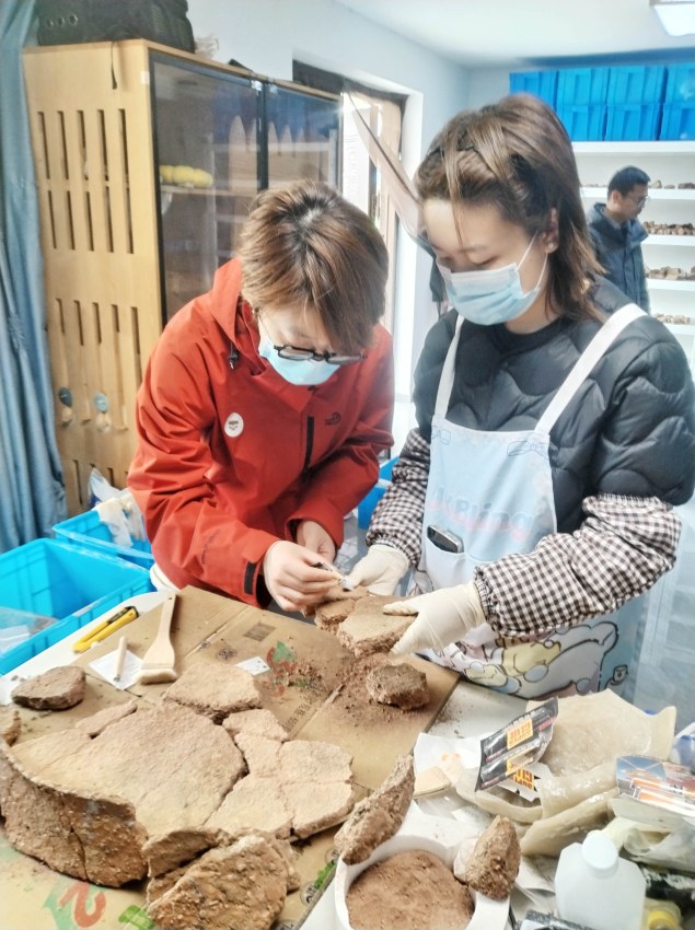 在姚家湾遗址考古队驻地,记者看到,文物修复专家正对出土的广富林文化时期一件煎盐盘的碎片进行拼接修复,后续将以石膏补全,力争还原器型。“这个煎盐盘为浅盘造型,高十几厘米,修复完成后将进入博物馆展示。”朱雪菲说,姚家湾遗址既有距今约4000年的盐灶,又有距今4800至4600年间的制盐工作面。今年将进一步扩大对该工作面的探寻,同时针对广富林文化时期的盐灶及其废弃堆积开展全面发掘,力争完整复原盐灶内部结构。