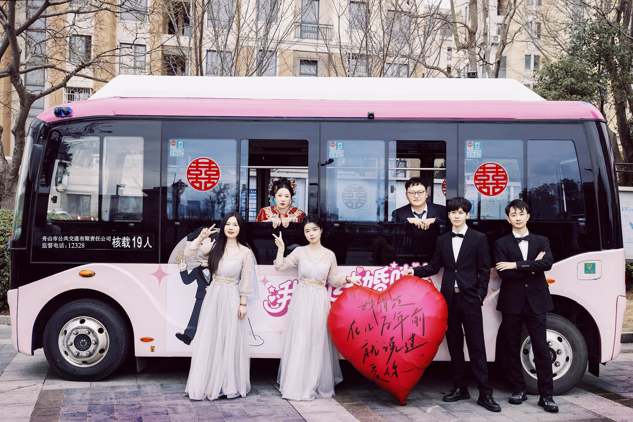 据悉,公交婚礼主题班车将提供个性化定制服务,车厢内外可根据新人的喜好装点鲜花、彩带等浪漫元素。想复刻同款浪漫体验的新人,可通过“舟山公交”微信公众号留言预约。