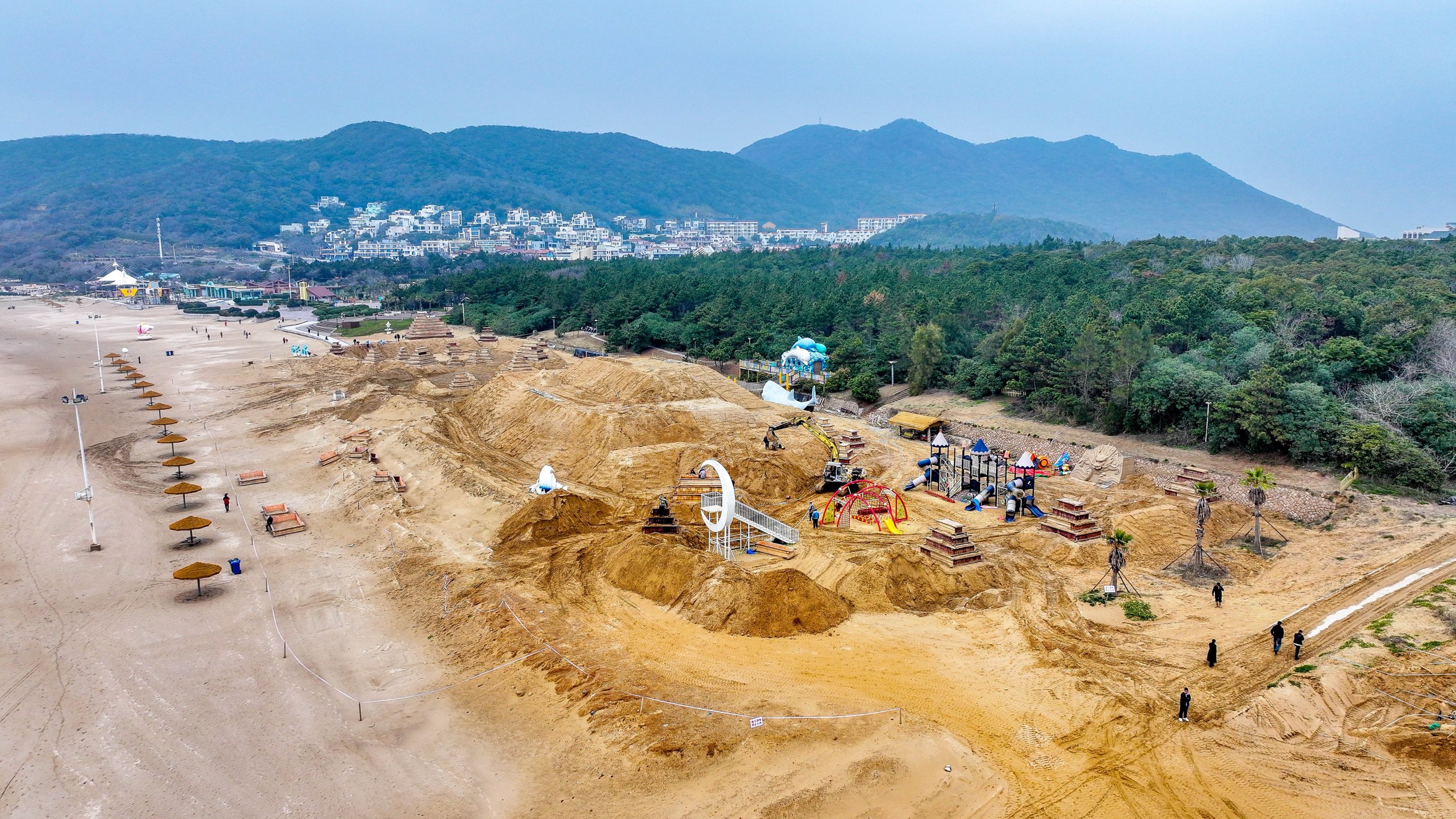 在朱家尖南沙打造1万平方米沙雕园区,布局50余组“马跃金沙”主题沙雕作品,开园后“东海音乐营”等配套活动精彩纷呈