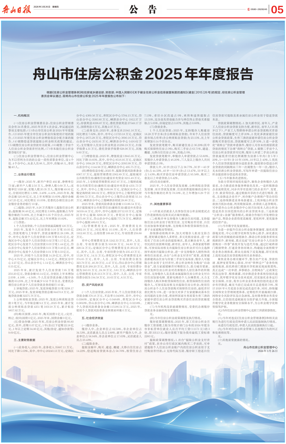 舟山市住房公积金2025年年度报告