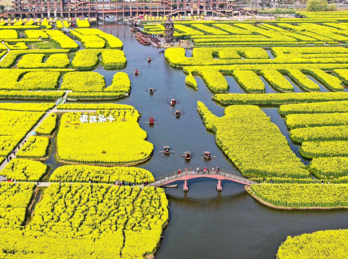时下,江苏省兴化市千垛景区的油菜花进入盛花期,吸引众多市民游客前来踏青赏花,放松身心。