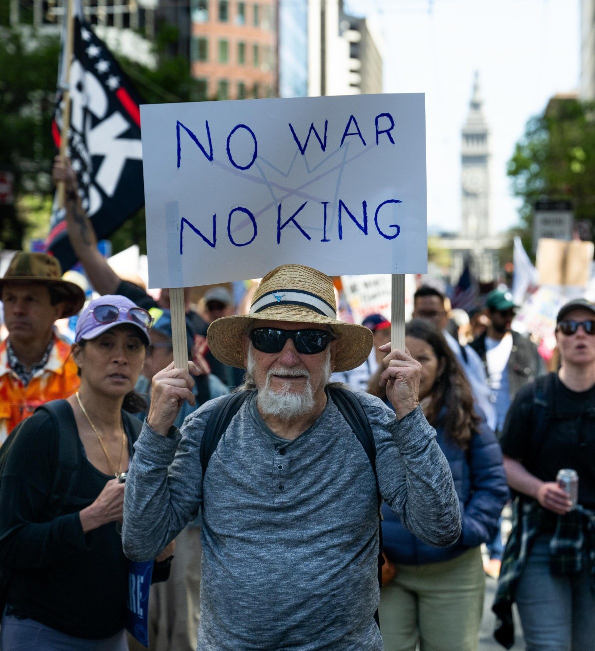 3月28日,人们在美国加利福尼亚州旧金山参加“不要国王”抗议活动。