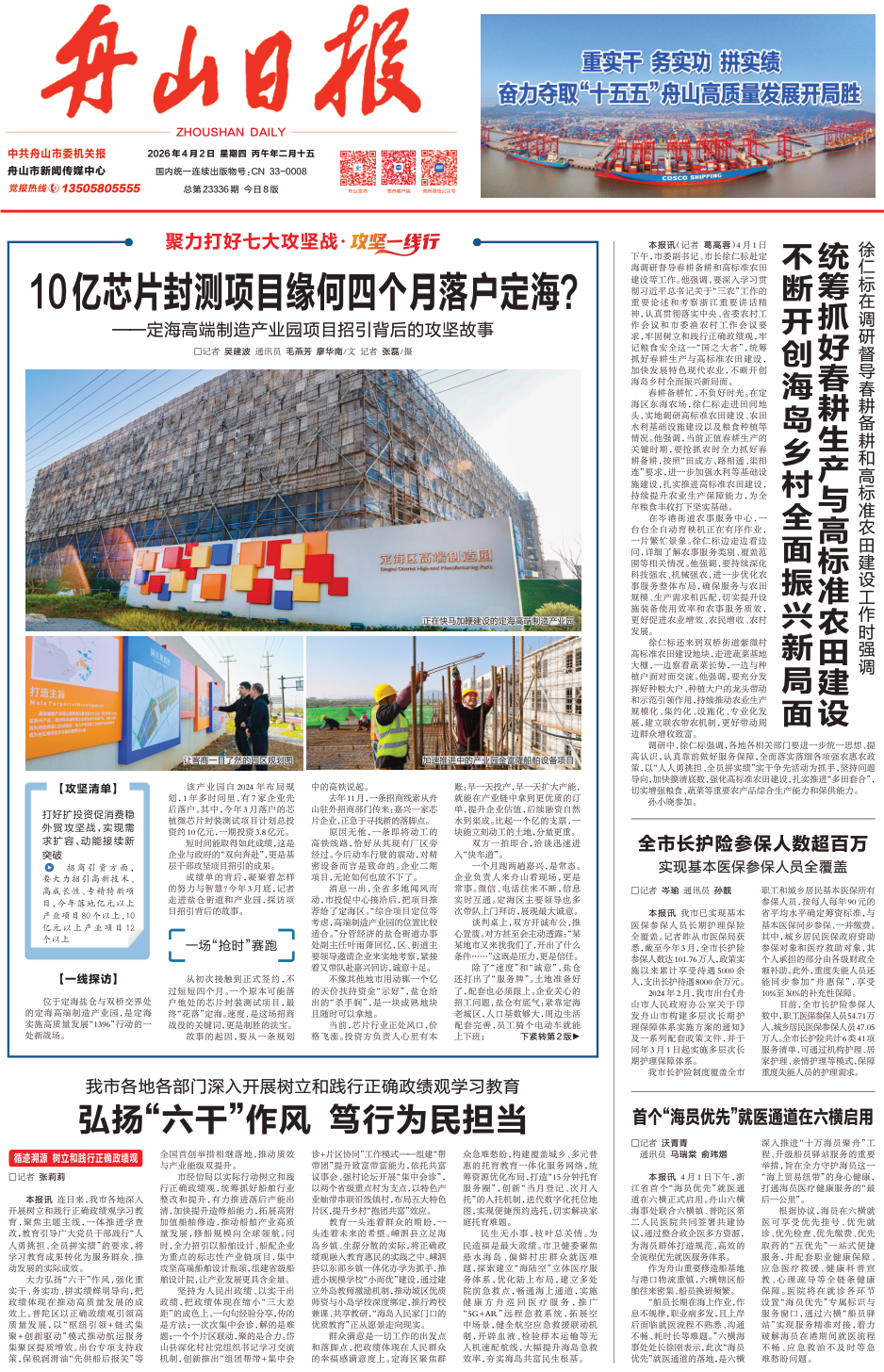 统筹抓好春耕生产与高标准农田建设 不断开创海岛乡村全面振兴新局面