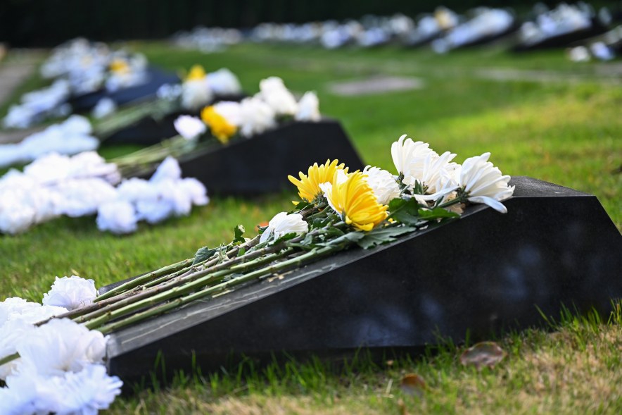 默哀毕,退役军人、军嫂、军娃代表和市区退役军人系统领导共同向烈士敬献花篮。洁白的菊花、素雅的花篮,寄托着后人对先烈的无限敬仰。
