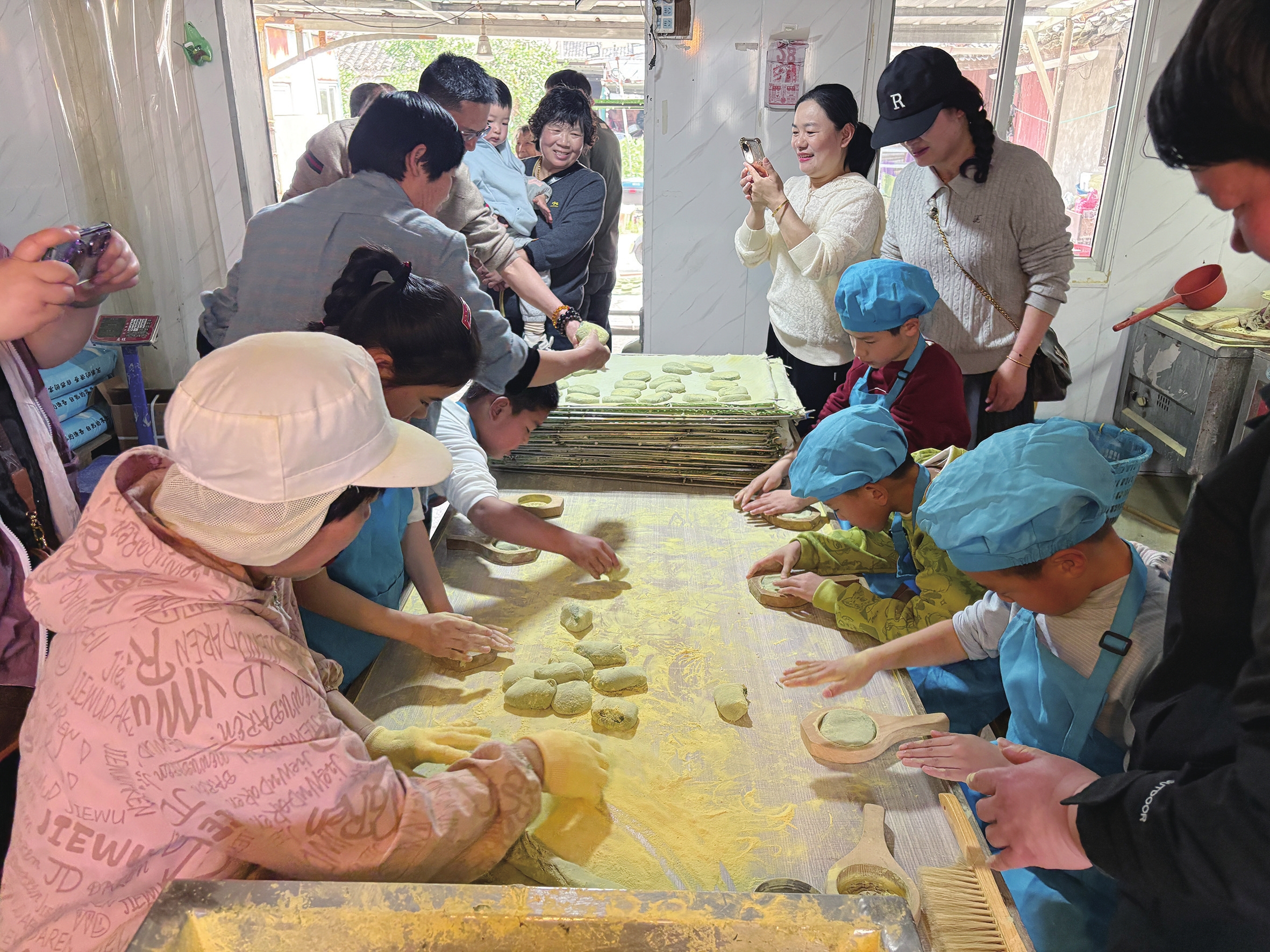 作坊负责人张海芬告诉记者,短短一天半的时间,已接待超百人次前来体验青饼制作。大家在揉、捏、压的过程中沉浸式感受民俗韵味,让这场春日乡村之旅既有鸟语花香的自然意趣,又饱含传统节日的文化温情。