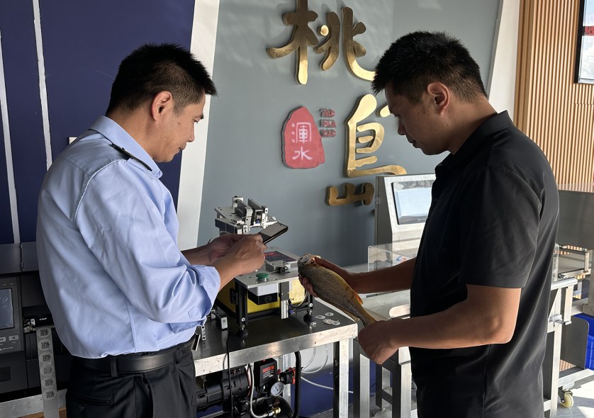 另外,普陀分局对于桃花岛的舟山大黄鱼养殖产业,强化溯源管理,提升品牌保护力。该局打通普陀区农产品合格证系统“浙农码”和“浙食链”,实现数据精准对接。引导天沐公司配备“GM2D”标识打印设备,按每批次大黄鱼产量在线申领批次码,并通过订码设备将二维码固定在鱼嘴上,确保身份信息流转至销售终端,有效打击混淆产地、冒用商标及地理标志等行为。