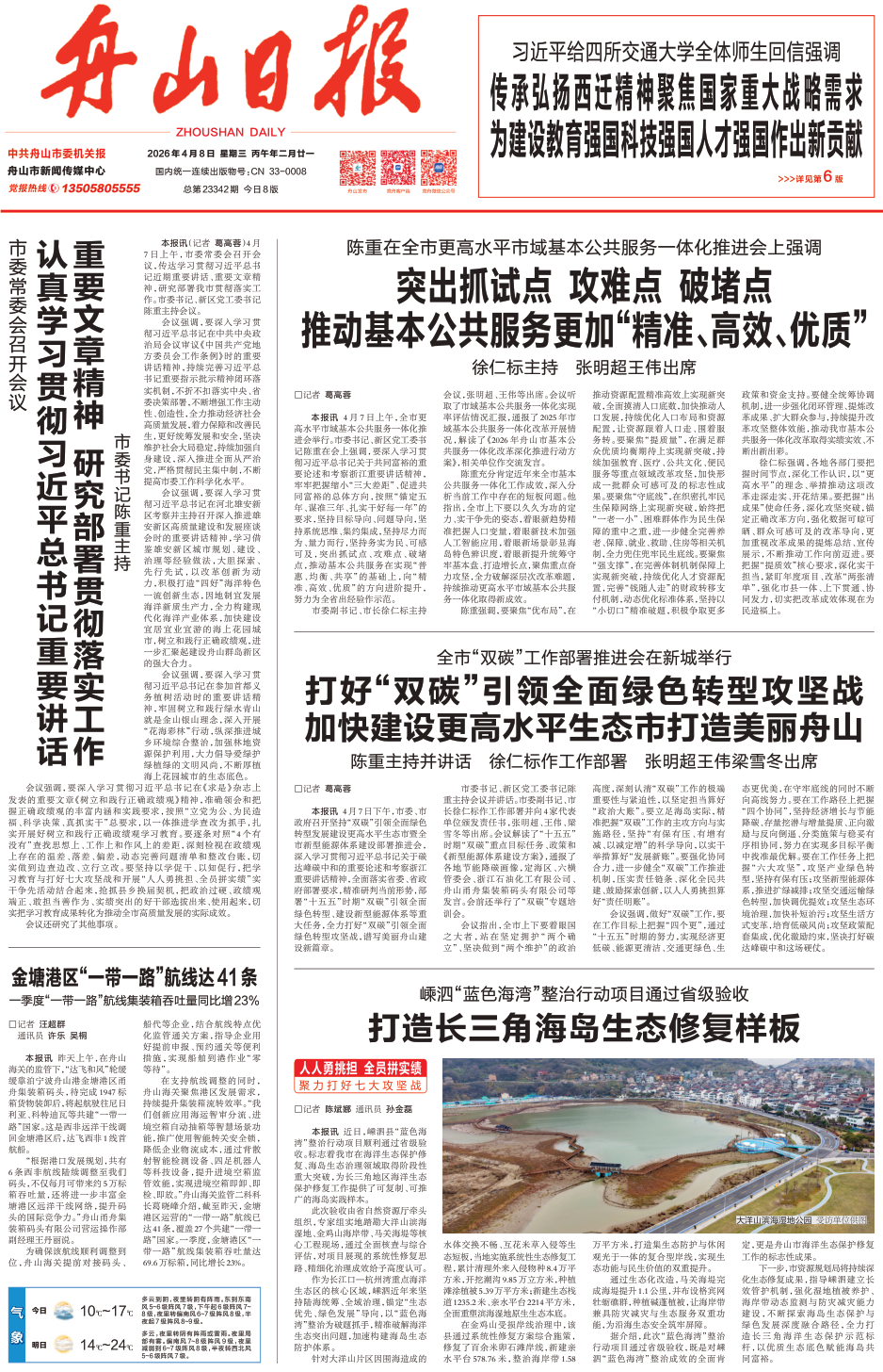 打好“双碳”引领全面绿色转型攻坚战 加快建设更高水平生态市打造美丽舟山
