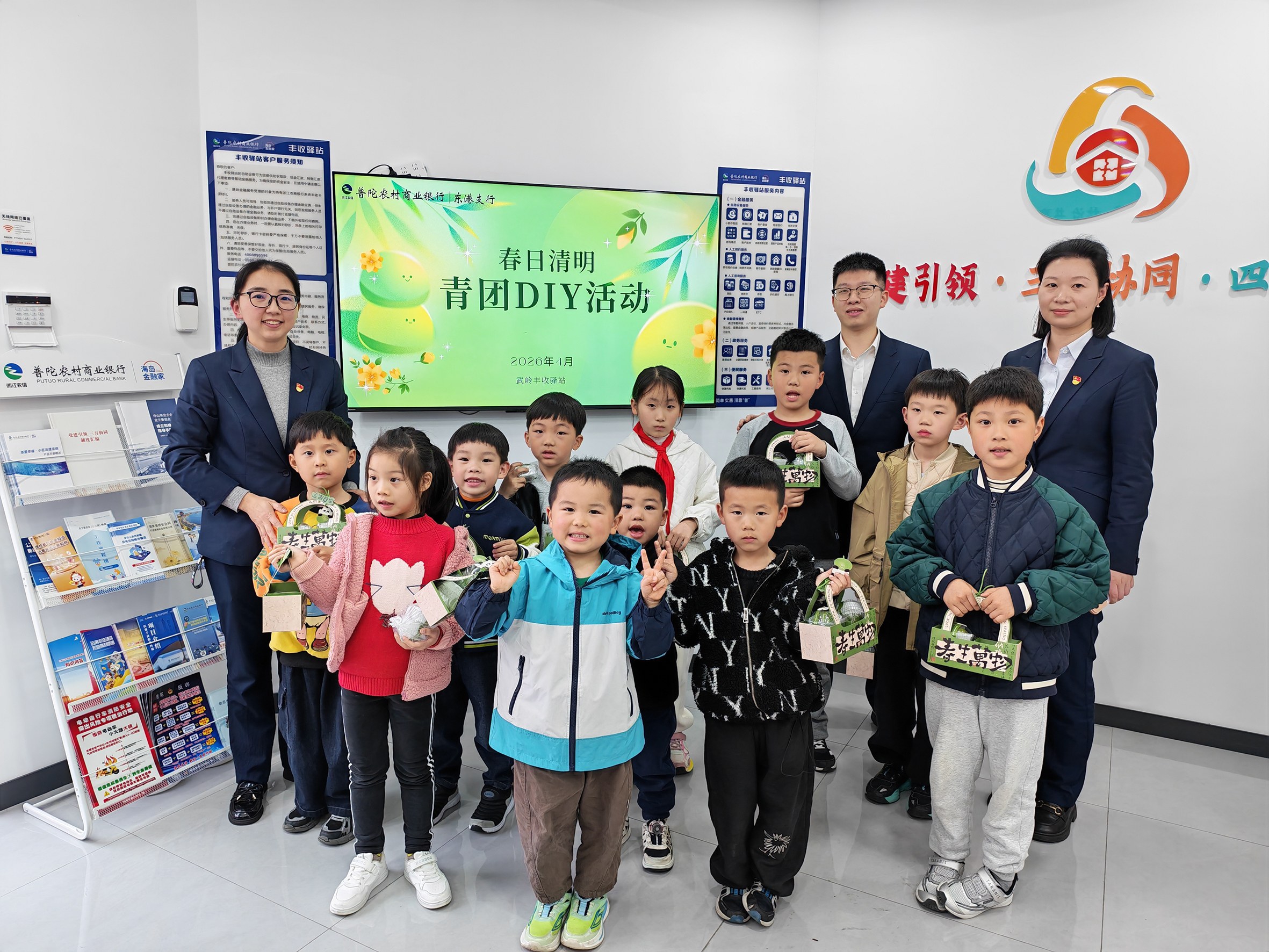 普陀农商银行武岭丰收驿站近日举办“清明青团DIY”主题活动,邀请周边幼儿园小朋友及家长参与。