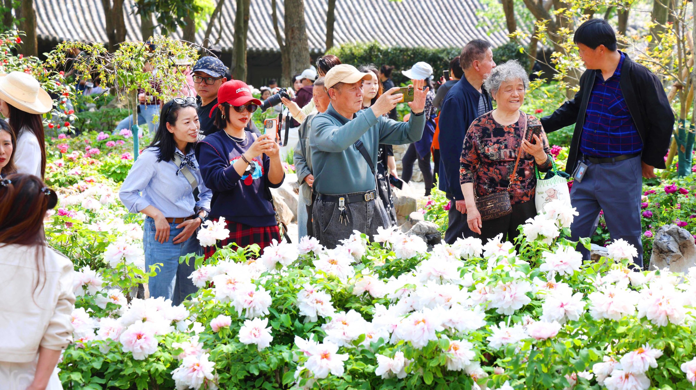 昨天,普陀沈院牡丹园,3万余株牡丹花竞相绽放、争奇斗艳,呈现一片春意盎然。连日来,牡丹“花海”吸引了各地游客前来观赏。
