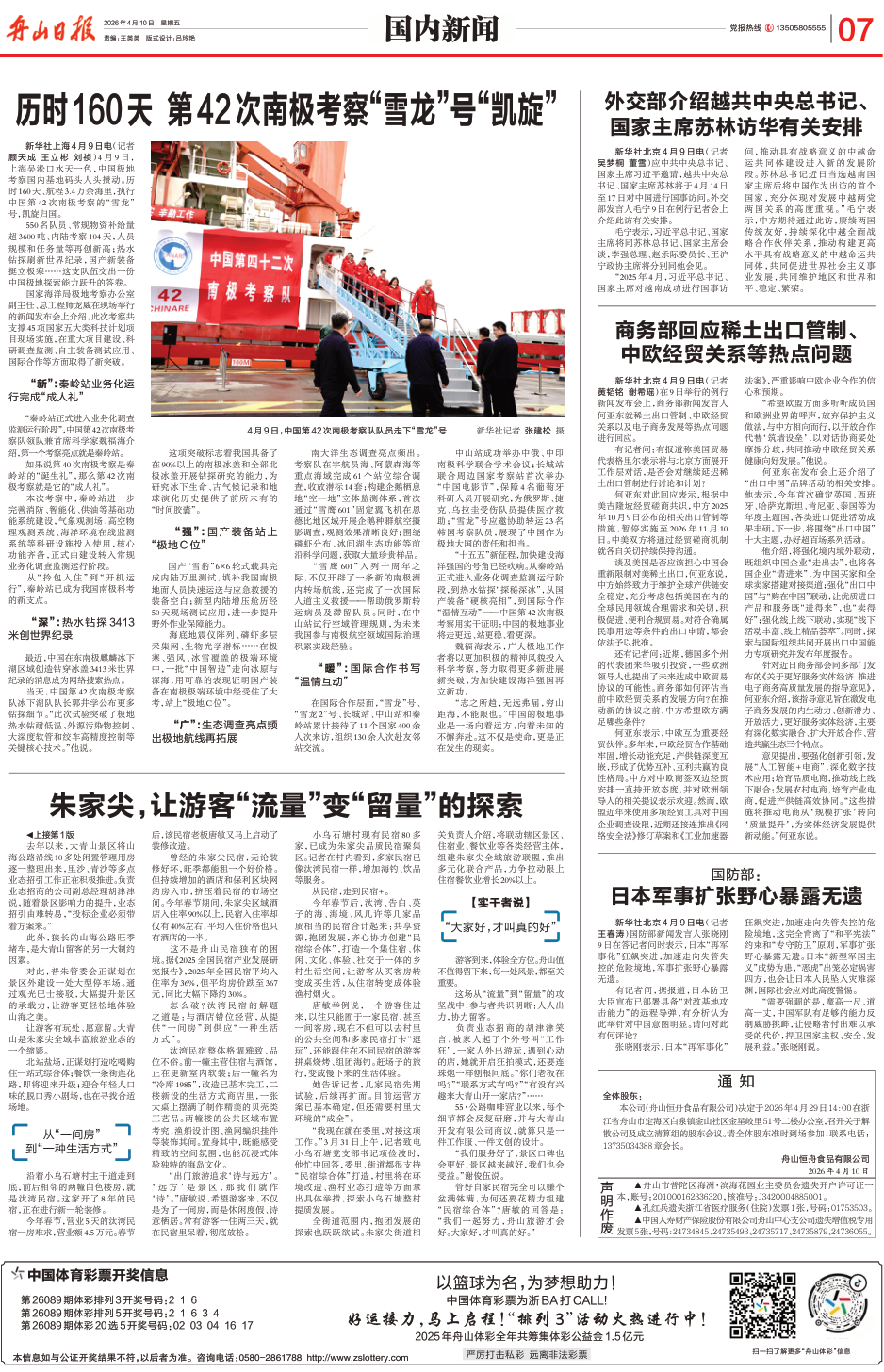 《 舟山日报 》( 2026年04月10日 第 07 版 )