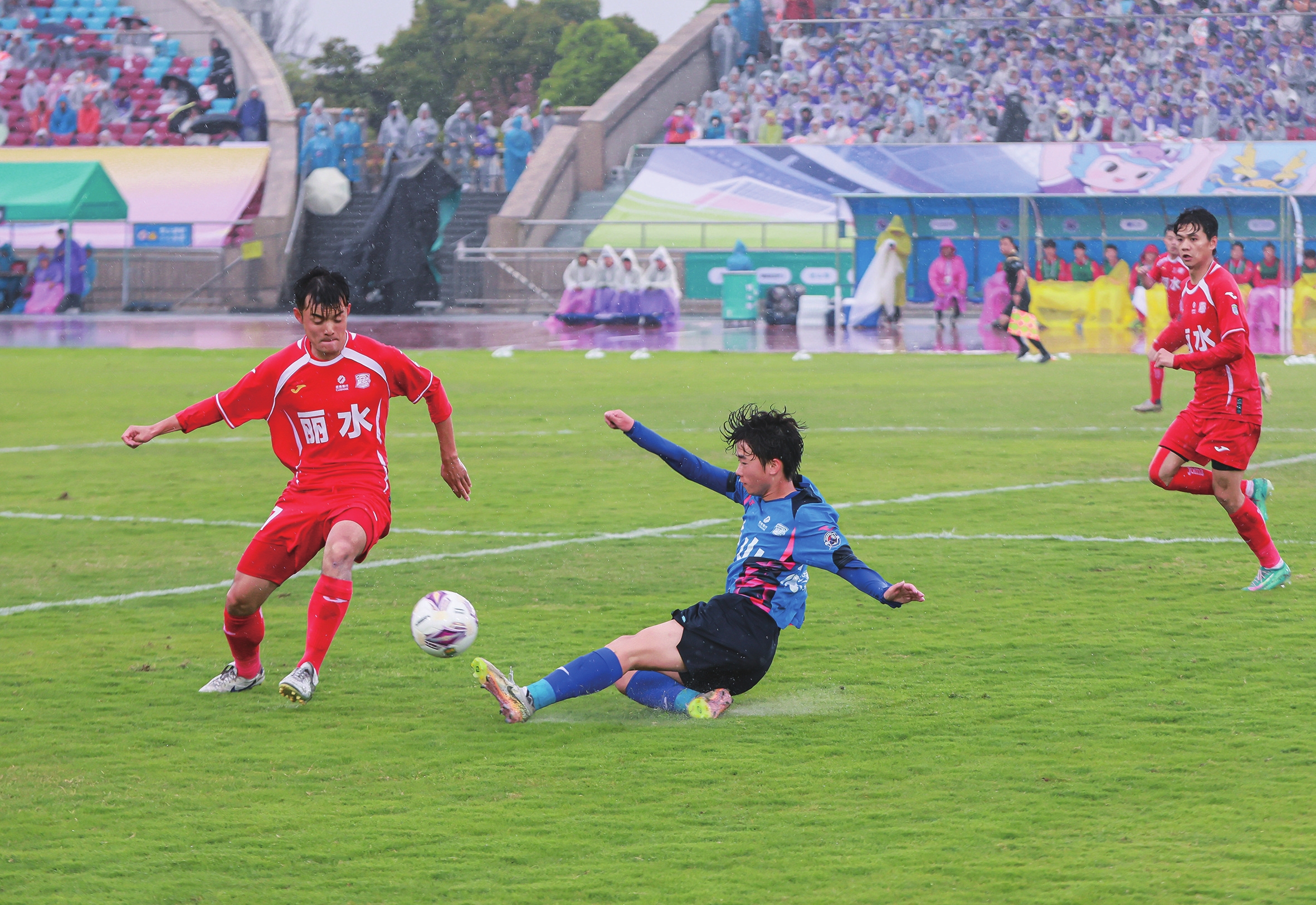 本报讯 昨天下午,2026浙江省城市足球联赛(吴越杯)第二轮舟山队主场迎战丽水队。雨中,舟山队拼尽全力,但最终仍以0∶1遗憾告负。
