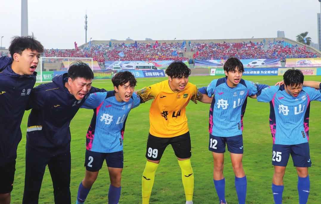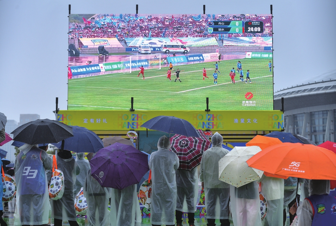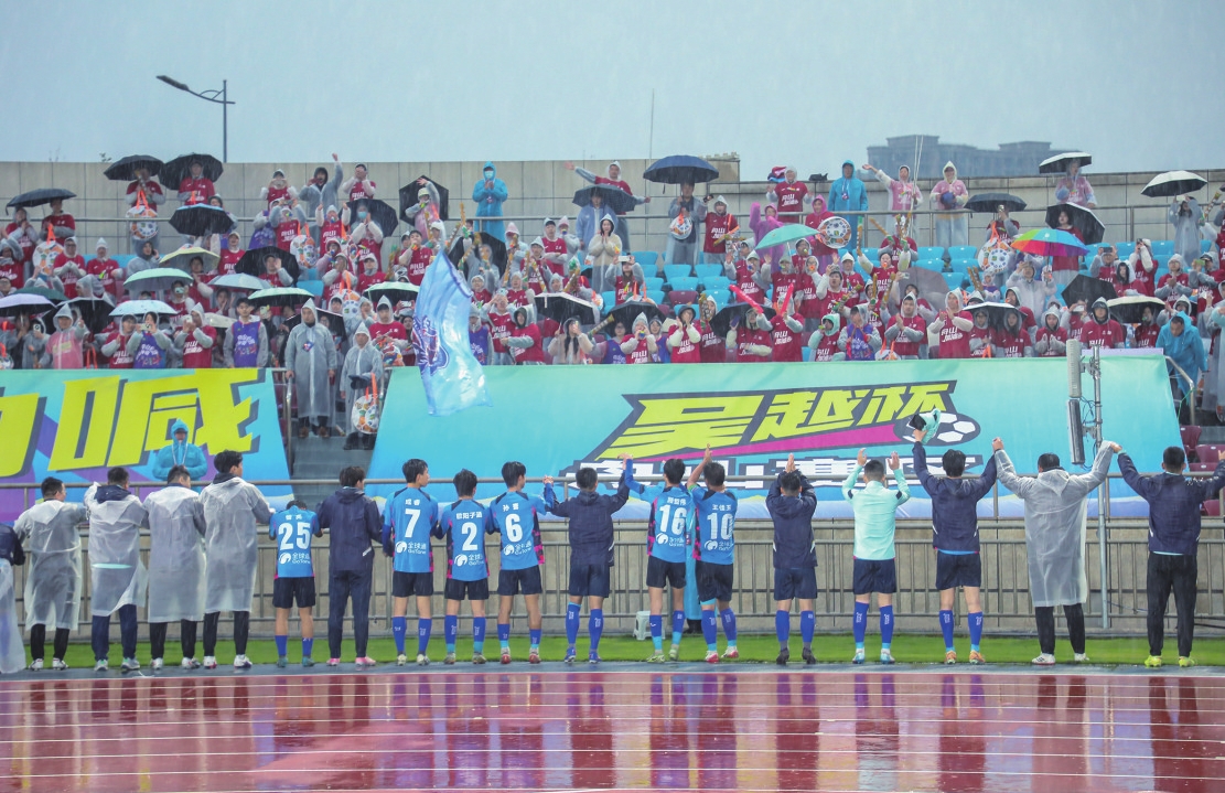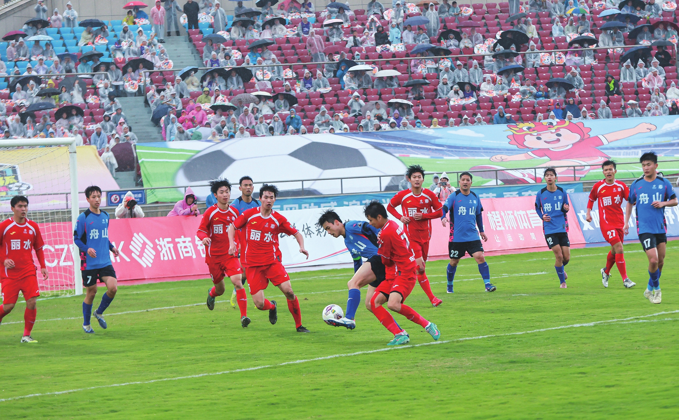 比赛在大雨中进行,丝毫未影响舟山球迷的热情,加油声、擂鼓声此起彼伏。在一球落后的情况下,舟山队不放弃、不气馁,拼到最后一分钟,赢得观众热烈掌声。