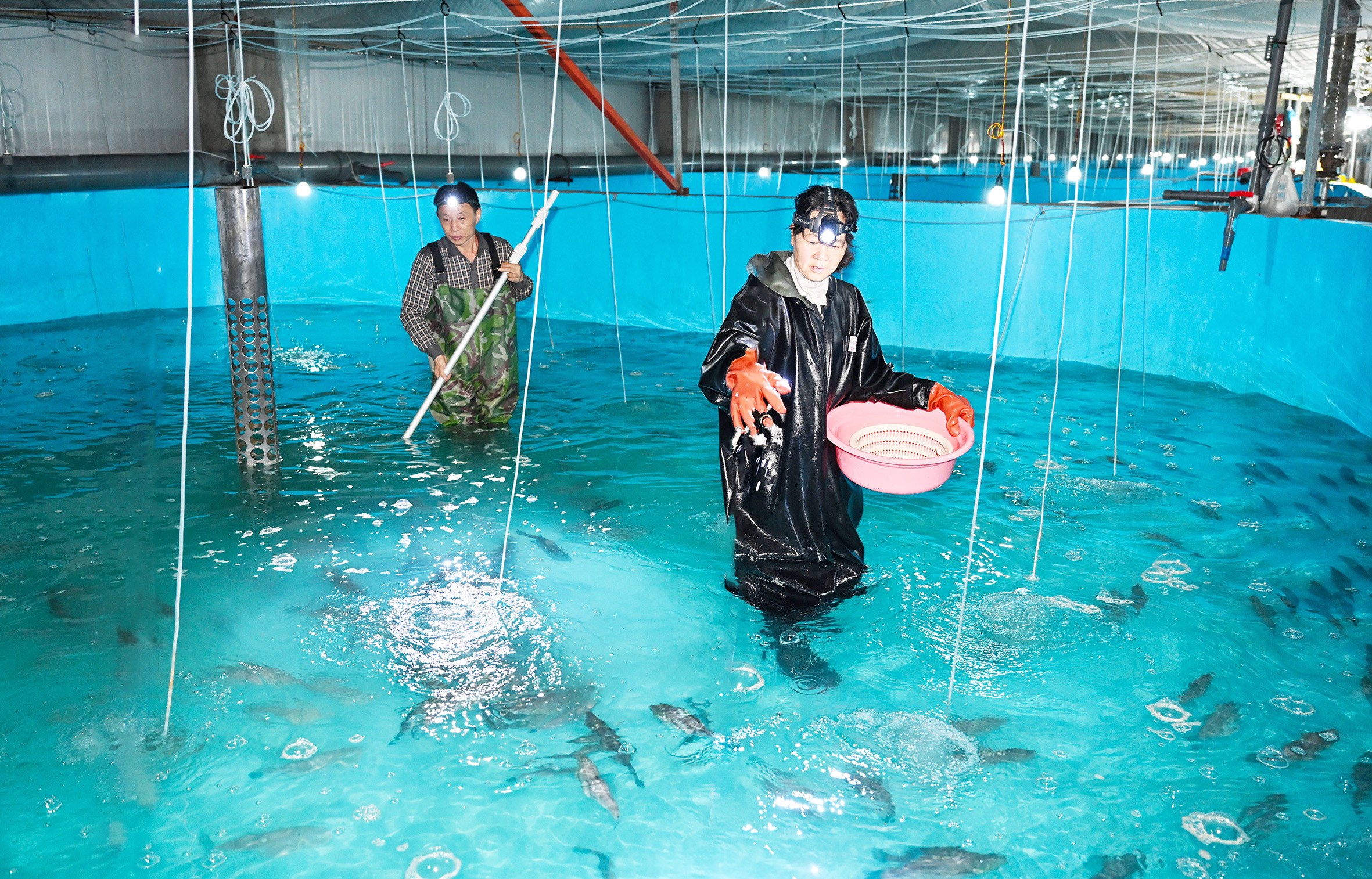 近日,位于嵊泗县洋山镇的浙江东瀛丰海洋科技有限公司,工人们正在进行马面鲀苗种培育作业。据了解,去年,该公司联合国内多家知名科研单位,成功突破绿鳍马面鲀人工育苗技术,育出50万尾苗种,填补了浙江省内该领域空白。