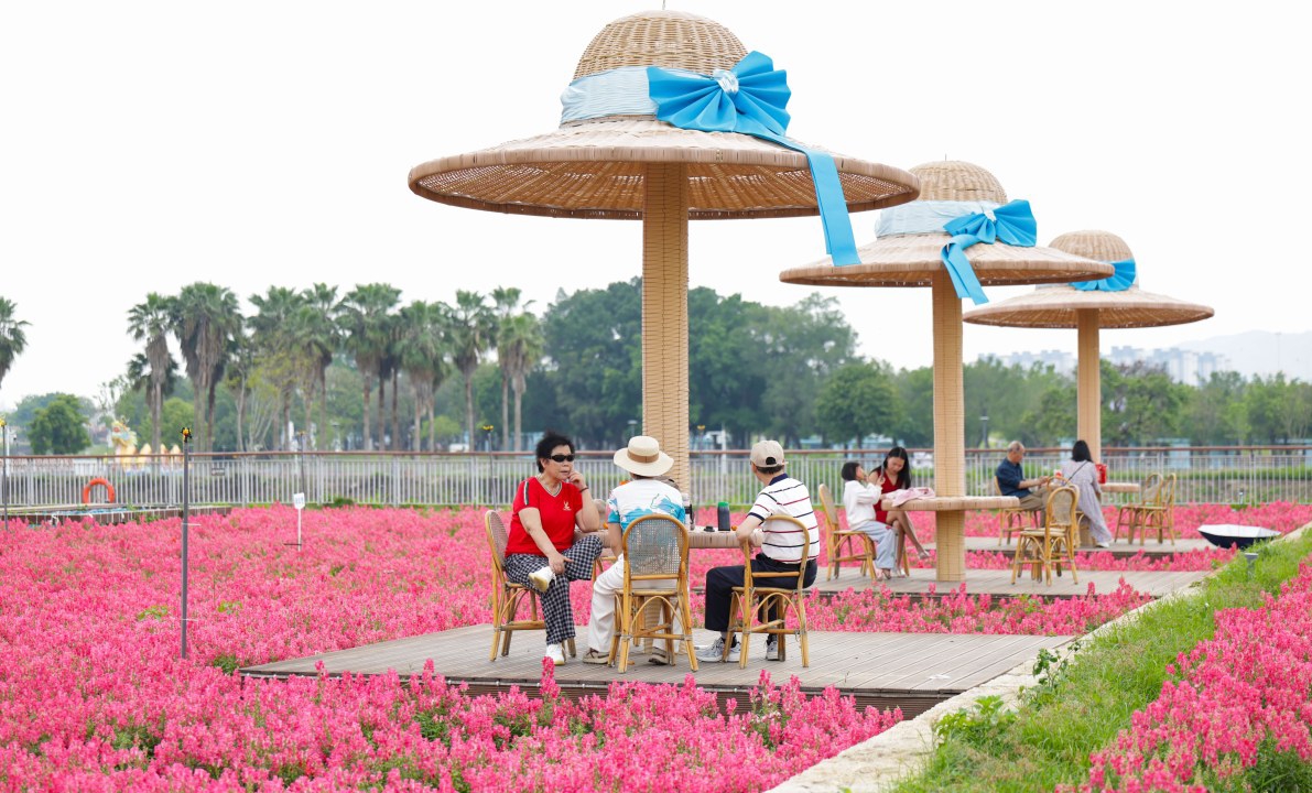 4月11日,游客在福建漳州龙江岁月景区休闲。近年来,福建省漳州市将生态修复与城市更新深度融合,在九龙江西溪南岸分批推进龙江岁月城市更新项目,昔日的滩涂荒地变身绿意盎然的生态岸线,成为市民日常休闲和游客打卡的好去处。