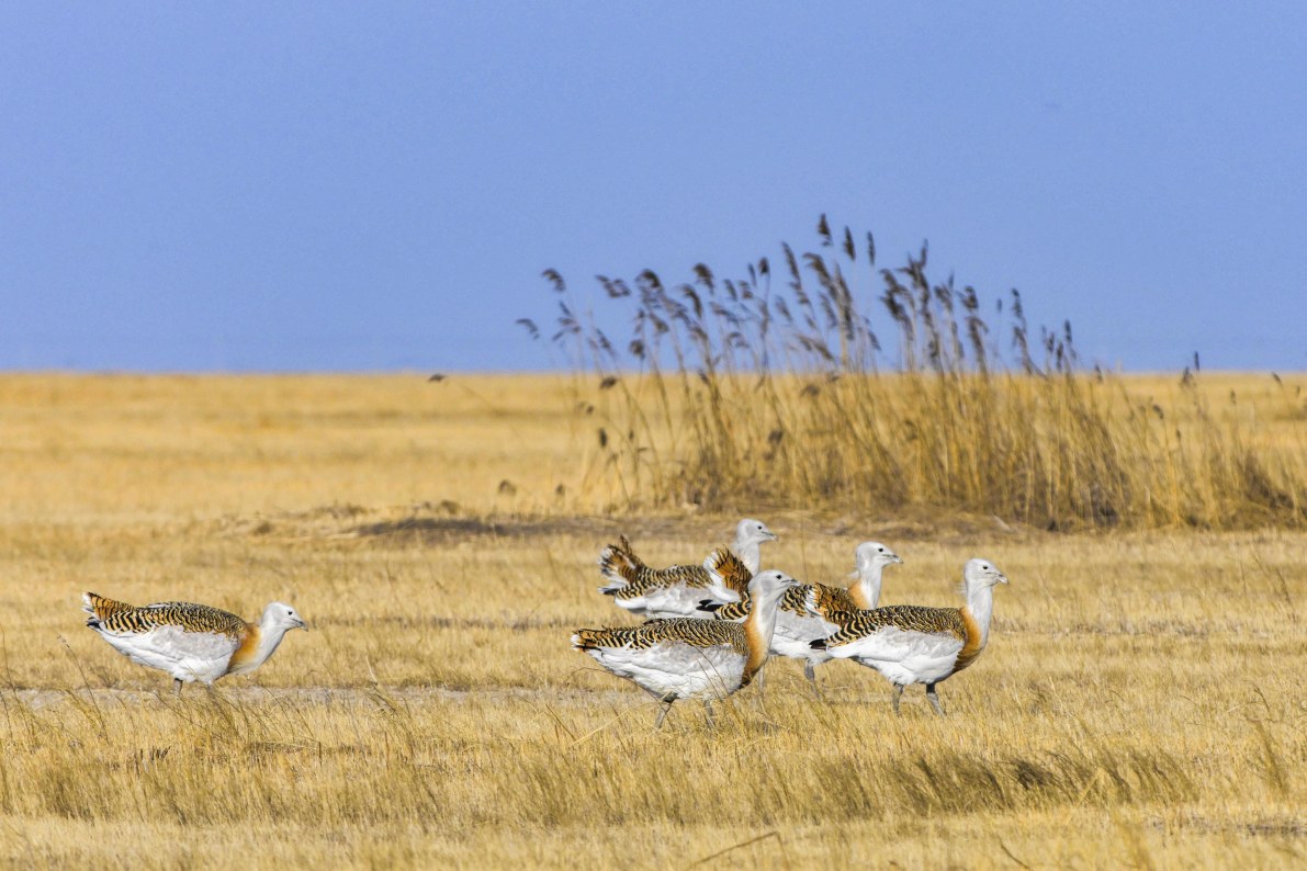近日,国家一级保护动物大鸨现身黑龙江省林甸县的草原。大鸨是鹤形目鸨科大型地栖鸟类,主要栖息于开阔的平原、干旱草原、稀树草原和半荒漠地区,被列入《世界自然保护联盟濒危物种红色名录》和《中国濒危动物红皮书》。