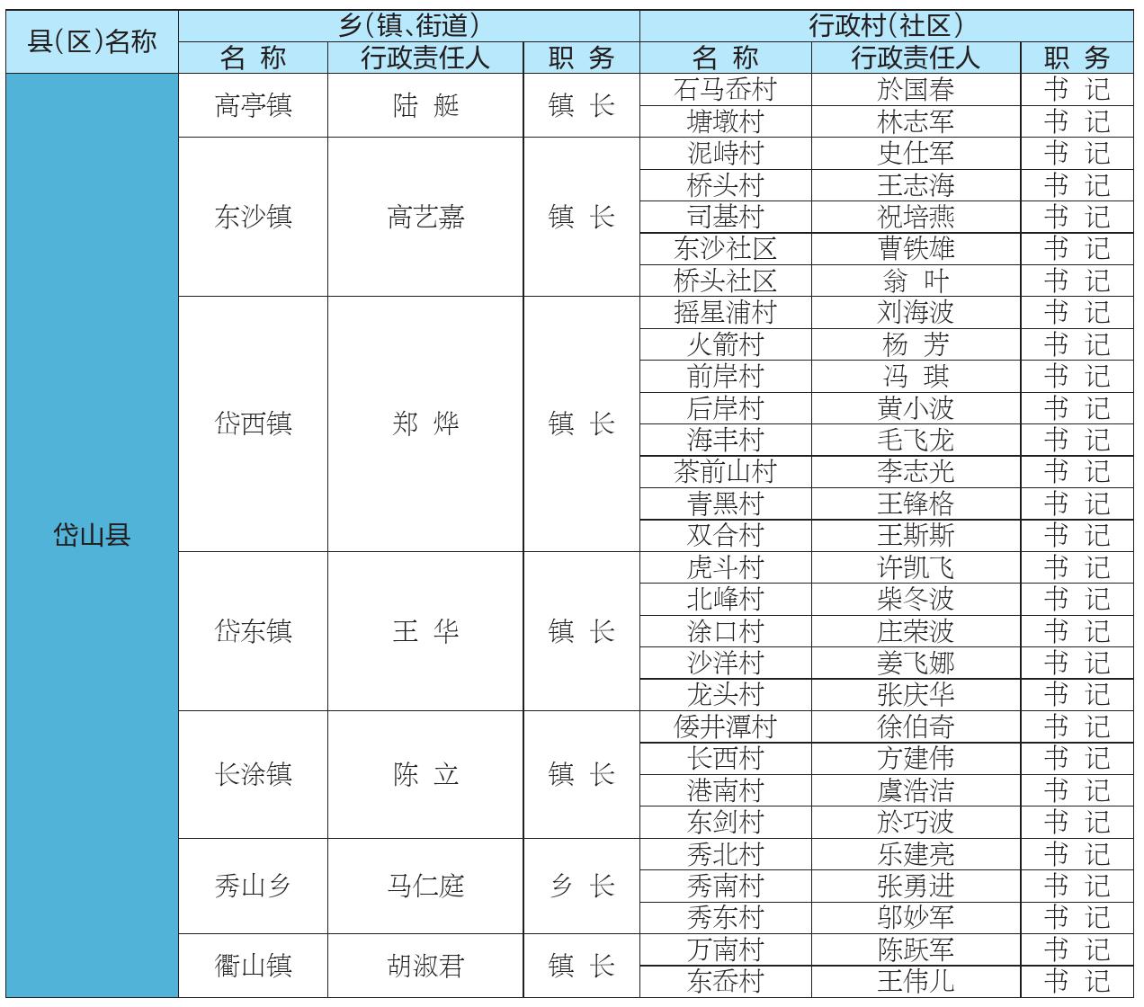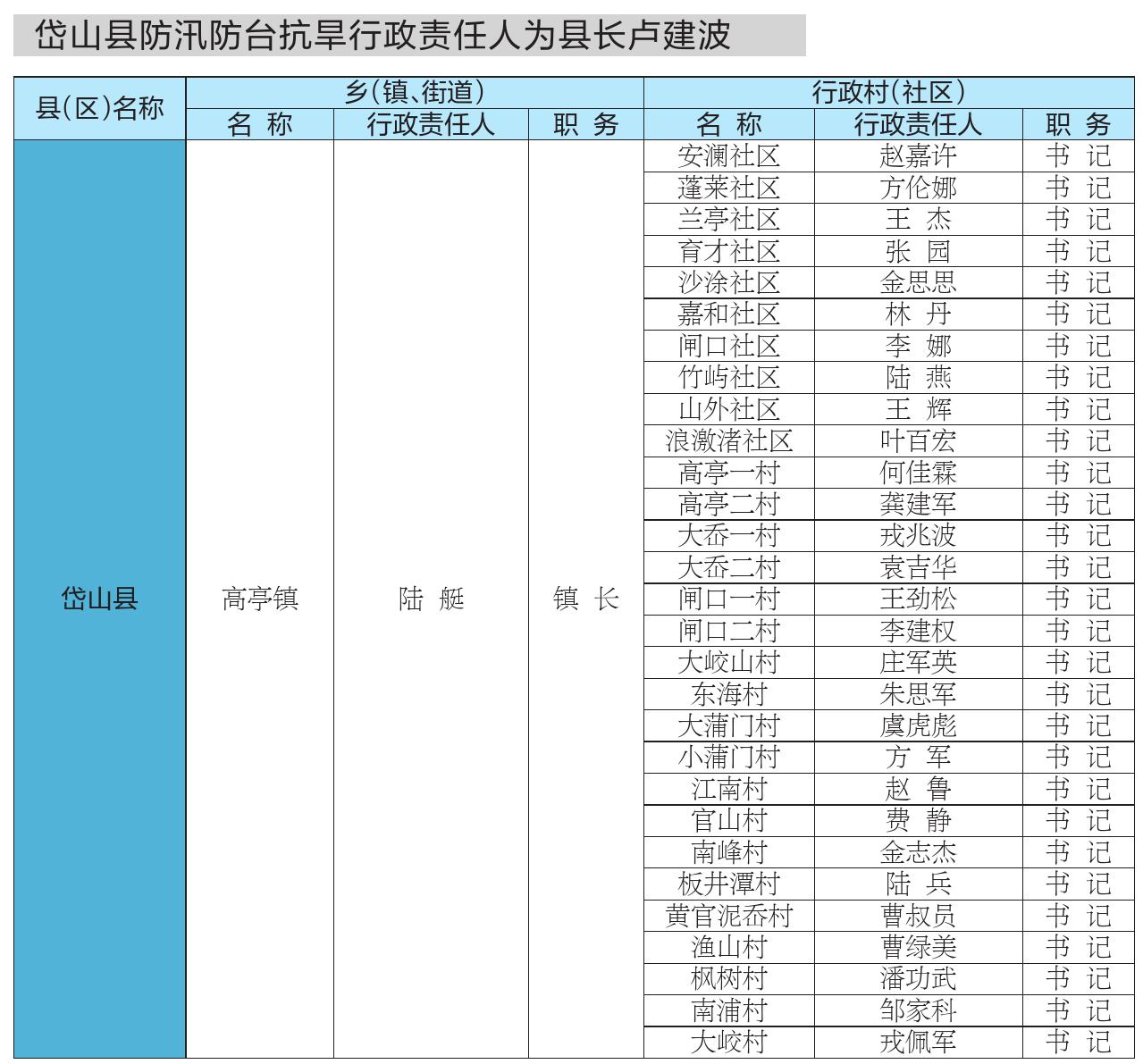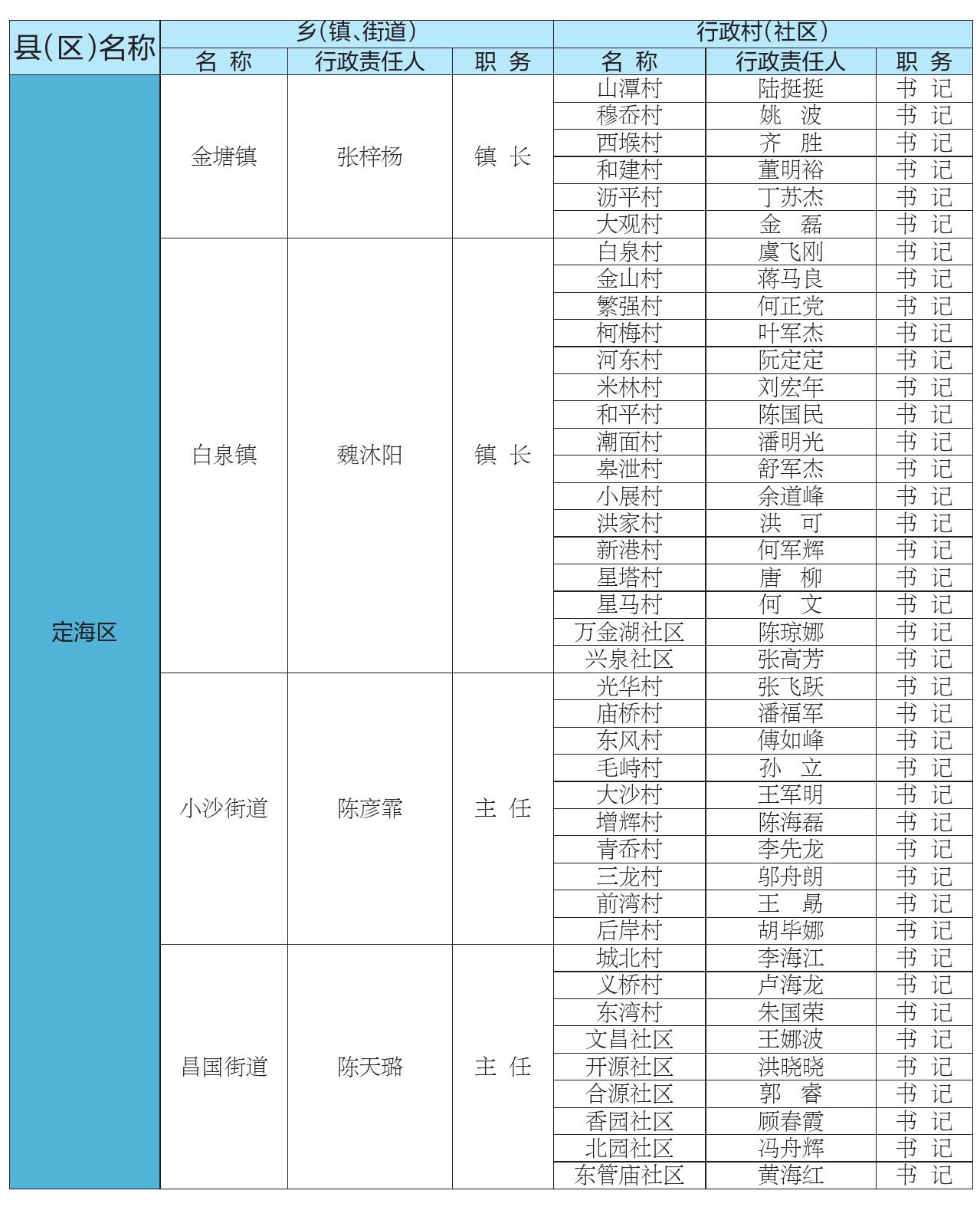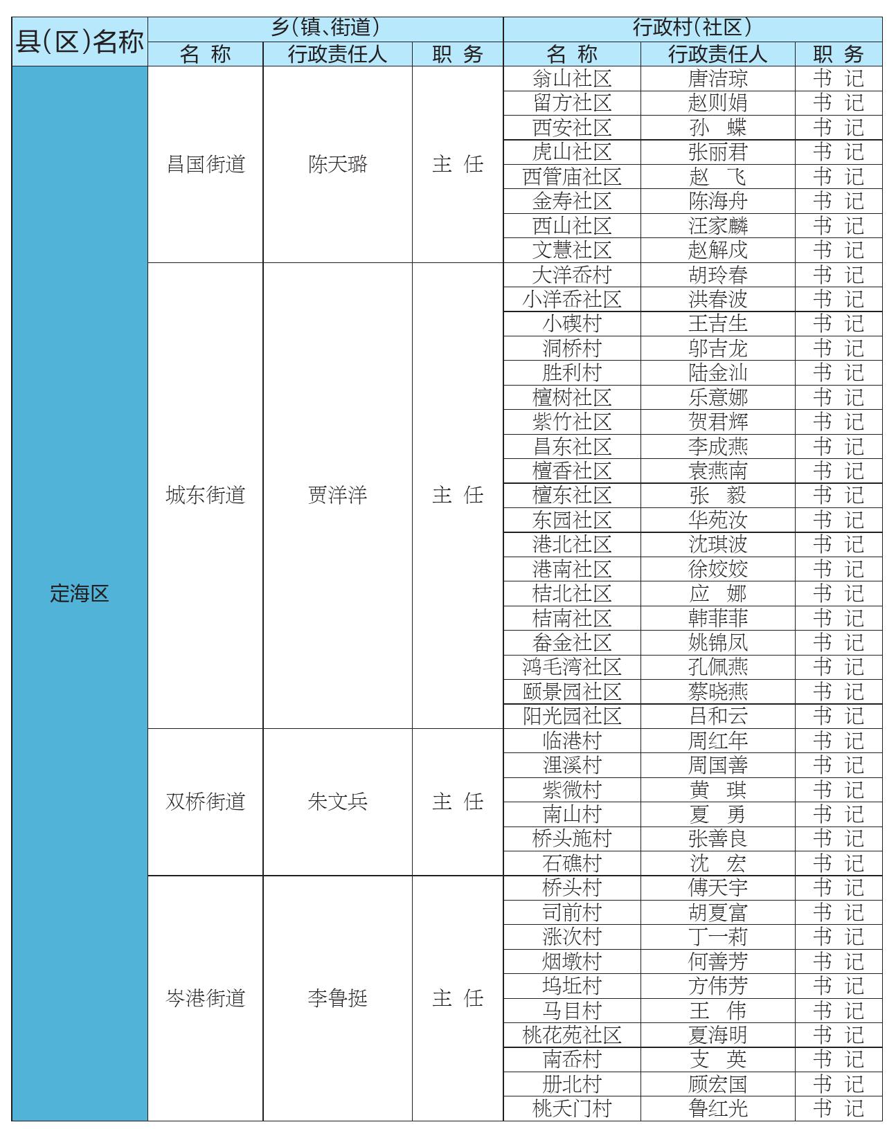 舟山市2026年乡(镇、街道)和行政村(社区)防汛防台抗旱行政责任人名单