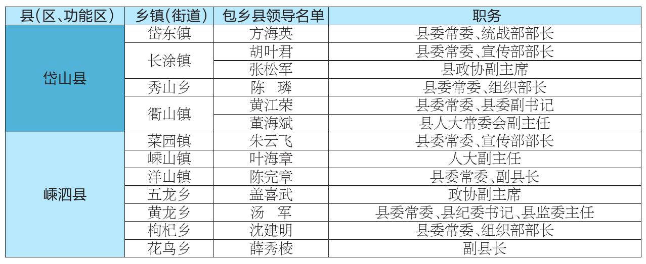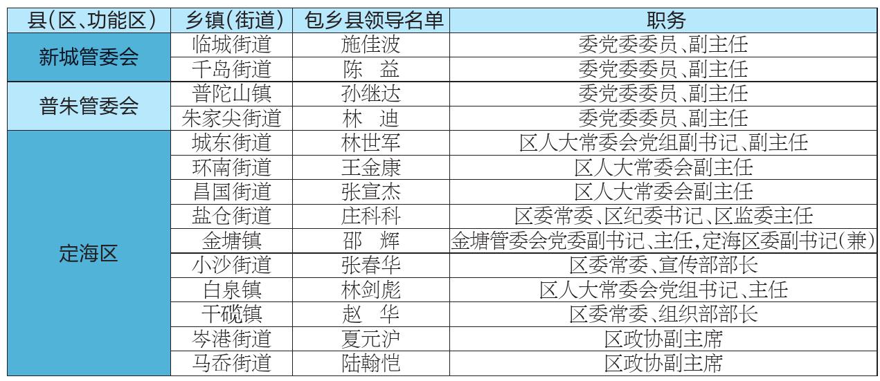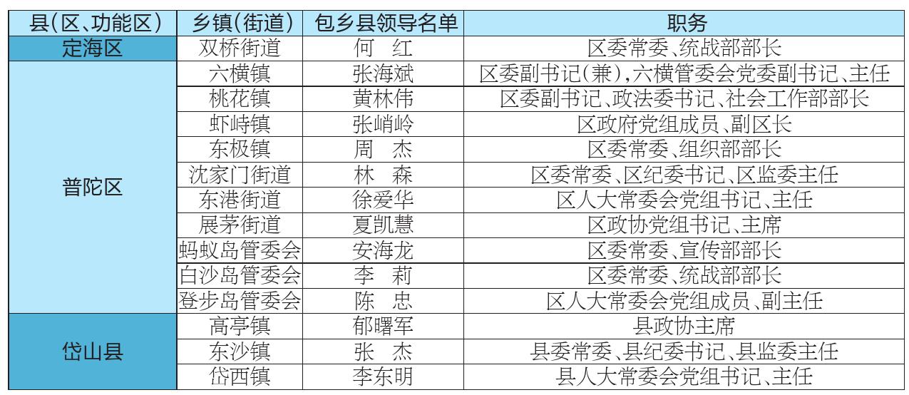 舟山市防汛防台“县领导包乡”包保责任人名单